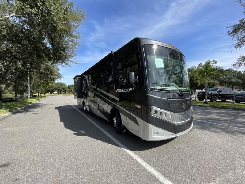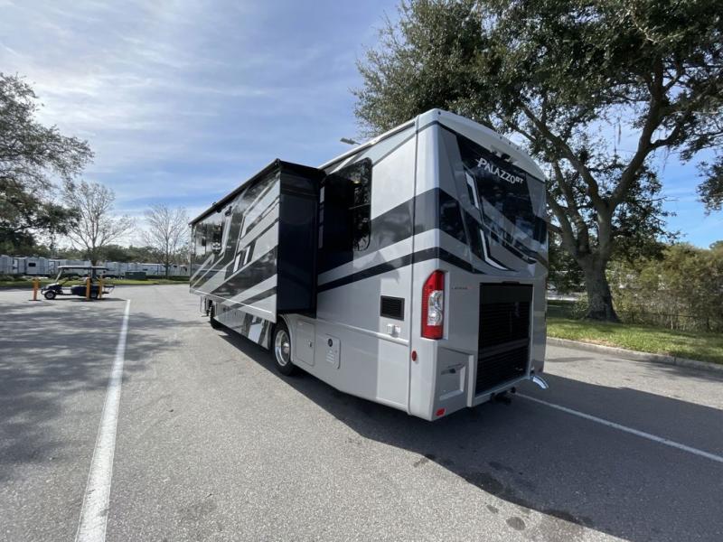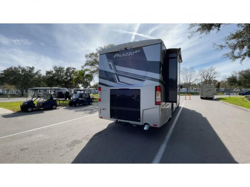 Start traveling affordably with the ultimate comfort and conveniences with any one of these Thor Motor Coach Palazzo GT Class A diesel motorhomes! They are built on a robust foundation with the Freightliner XC-S straight rail chassis with Atlas foundation, and powered by a Cummins diesel engine. The full body paint package with gel-coated sidewalls will turn heads on the highway and the invisible front paint protection will protect it from road debris. The inviting interiors have everything you need to feel right at home with features like an electric fireplace, easy-to-maintain rolled vinyl flooring, solid surface countertops, and residential refrigerator to fit your whole grocery haul. Come find your favorite one today!