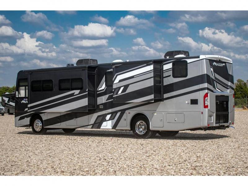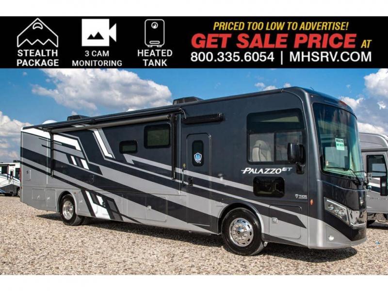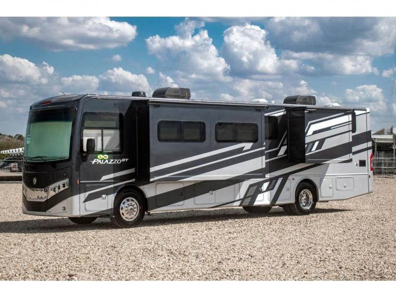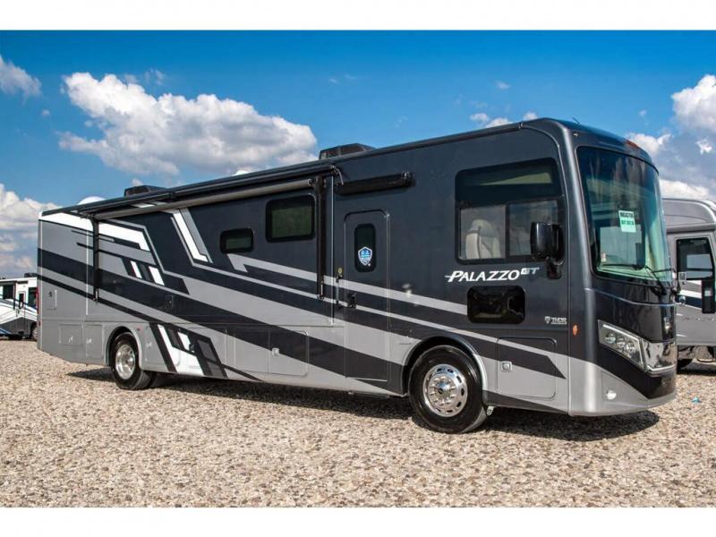 MSRP $334,019. The New 2026 Thor Motor Coach Palazzo GT Diesel Pusher Model 37.5 features a power drop down loft, double sink and a large bathroom, 340 HP Cummins diesel engine with 700 lbs. of torque and a Freightliner XC chassis. Standard features include bluetooth soundbar & large LED TV in the exterior entertainment center, induction cooktop, touchscreen multiplex control system with smartphone app, Winegard ConnecT 2.0 4G/Wi-Fi system, 360 Siphon Vent cap and outside shower. The Palazzo also features a power patio awning with integrated LED lighting, invisible front paint protection & front electric drop-down overhead loft, diesel generator, solid surface counters, power driver's seat, inverter, residential refrigerator, solid surface countertops, (2) ducted roof A/C units, 3-camera monitoring system, one piece windshield, fiberglass storage compartments, fully automatic hydraulic leveling system, automatic entry step and much more. Options include upgraded cabinetry, and stealth package. **Unit Not California CARB Compliant and Cannot be Registered in California**. Shop a huge selection of diesel pusher motorhomes all at 1 location! Choose from Thor Motor Coach Palazzo – Riviera – Aria – Fleetwood Discovery – Frontier – Holiday Rambler Endeavor – Nautica – Entegra Coach Reatta – Aspire and more. We also buy and sell quality pre-owned models such Newmar Mountain Aire – Dutch Star – New Aire – Ventana – Kountry Star – Northern Star - Allegro Bus – Phaeton – Allegro Red – Byway – Allegro Breeze – Winnebago Journey – Forza – Coachmen Sportscoach – Thor Venetian – Tuscany and much more. Visit MHSRV.com for our complete line-up and the sale prices that have made us the #1 volume selling motor home dealership in the world 12 years in a row! For additional details on this unit and our entire inventory including brochures, window sticker, videos, photos, reviews & testimonials as well as additional information about Motor Home Specialist and our manufacturers please visit us at MHSRV.com or call 800-335-6054. At Motor Home Specialist, we DO NOT charge any prep or orientation fees like you will find at other dealerships. All sale prices include a 200-point inspection, interior & exterior wash, detail service and a fully automated high-pressure rain booth test and coach wash that is a standout service unlike that of any other in the industry. You will also receive a thorough coach orientation with an MHSRV technician, a night stay in our delivery park featuring landscaped and covered pads with full hook-ups and much more! Read Thousands upon Thousands of 5-Star Reviews at MHSRV.com and See What They Had to Say About Their Experience at Motor Home Specialist. WHY PAY MORE? WHY SETTLE FOR LESS?