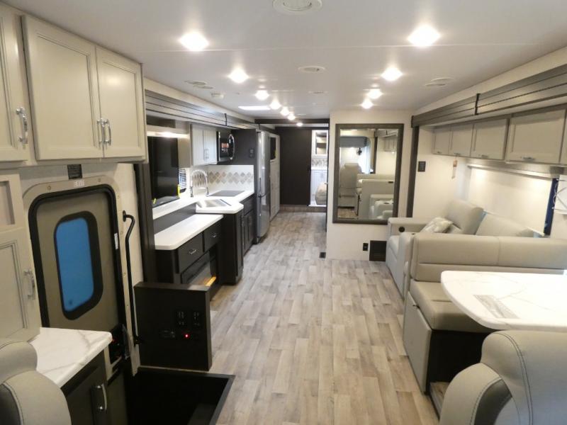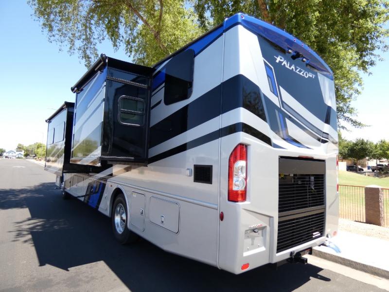 Start traveling affordably with the ultimate comfort and conveniences with any one of these Thor Motor Coach Palazzo GT Class A diesel motorhomes! They are built on a robust foundation with the Freightliner XC-S straight rail chassis with Atlas foundation, and powered by a Cummins diesel engine. The full body paint package with gel-coated sidewalls will turn heads on the highway and the invisible front paint protection will protect it from road debris. The inviting interiors have everything you need to feel right at home with features like an electric fireplace, easy-to-maintain rolled vinyl flooring, solid surface countertops, and residential refrigerator to fit your whole grocery haul. Come find your favorite one today!