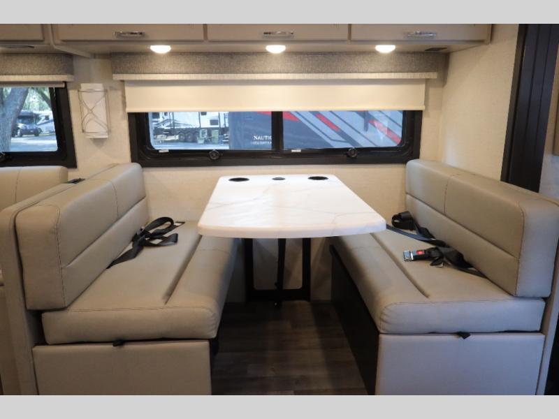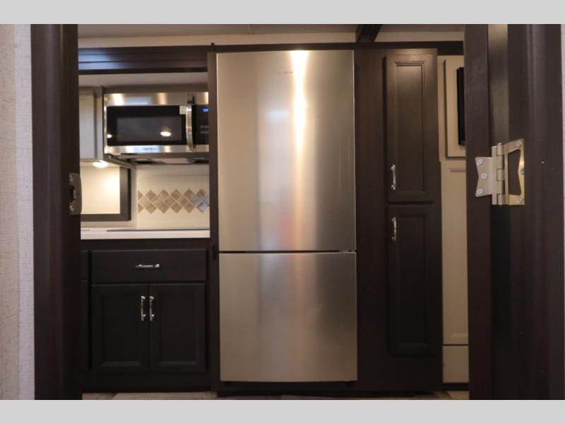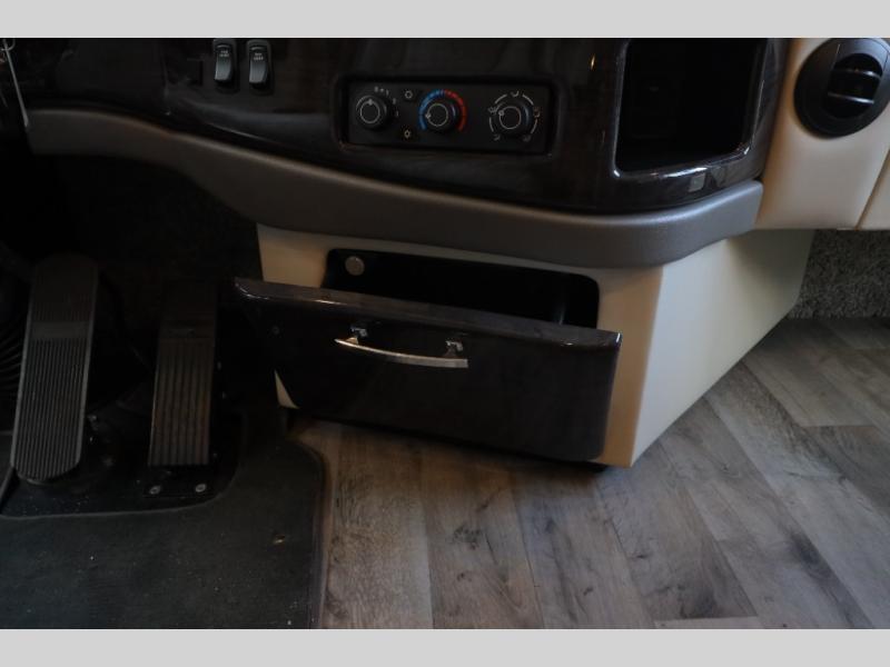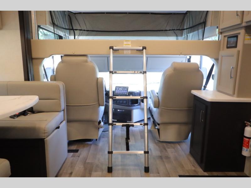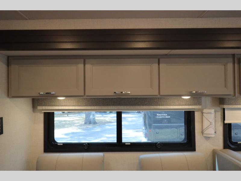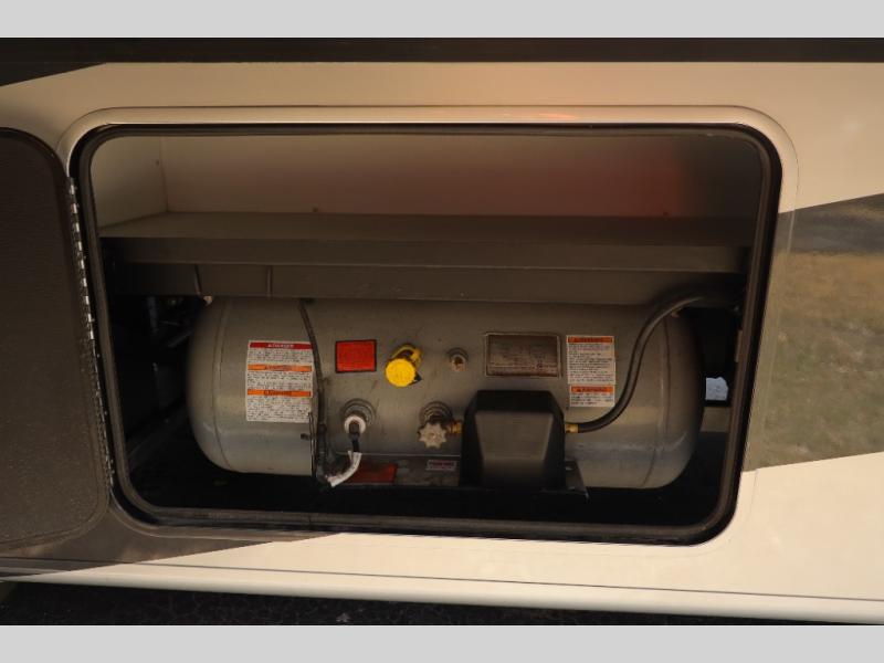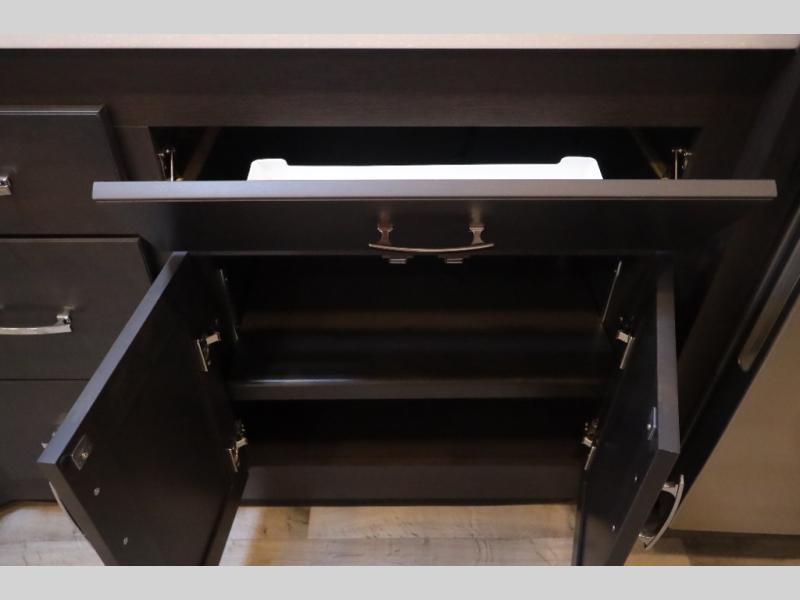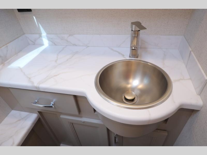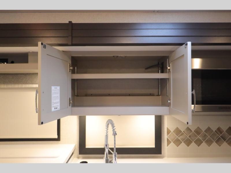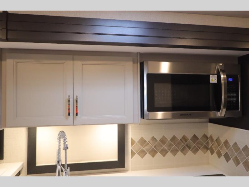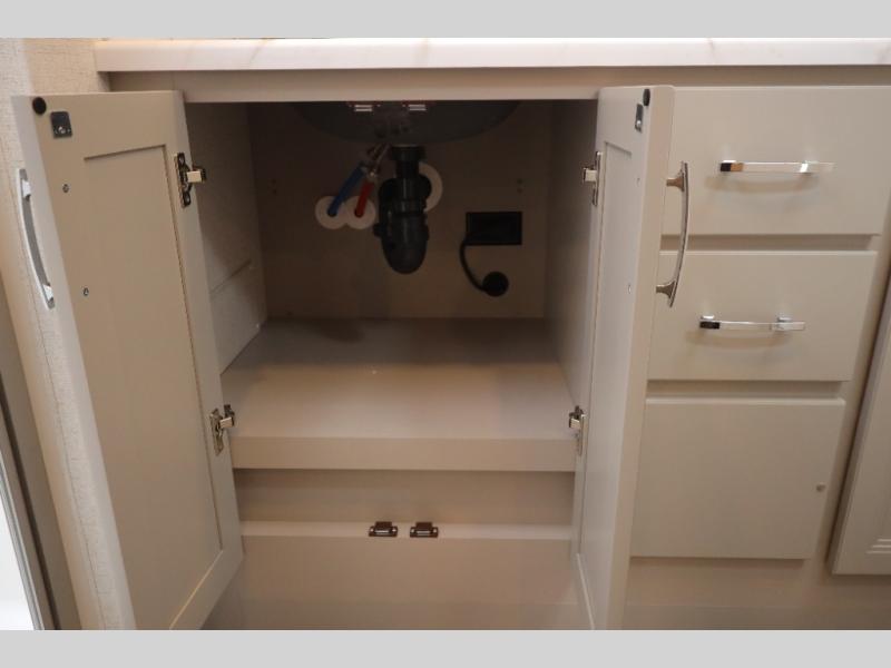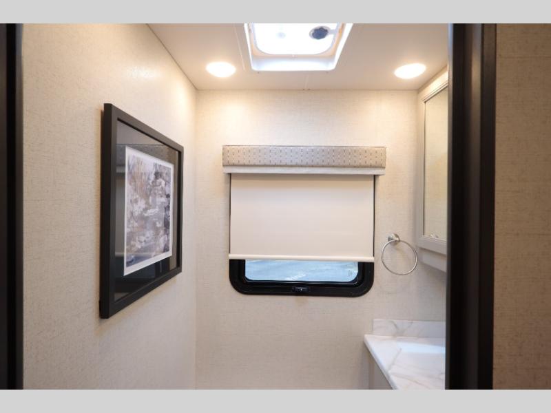 It's a clean decision to take this motorhome on your next vacation with a bath and a half! The 48" x 74" bunk over cab provides sleeping space in addition to the private bedroom which has a Tilt-A-View inclining queen bed slide for a good night's rest, a closet, a 32" LED TV to watch your favorite movies in comfort, and an area that has stacking washer and dryer prep next to a closet and pantry. Plus, you have access to the full rear bathroom which has a dual sink vanity and a 52" x 30" shower with a seat. You could even transform the 72" Dream Dinette and 74" jackknife sofa into extra sleeping spaces or switch out the sofa for optional 74" theater seating all located in front of the fireplace. Enjoy entertainment even outdoors with the outside TV.