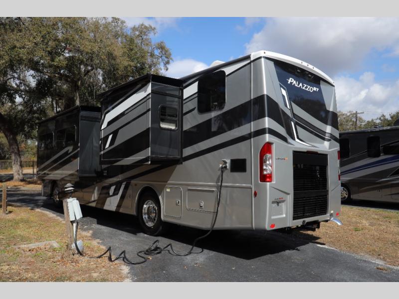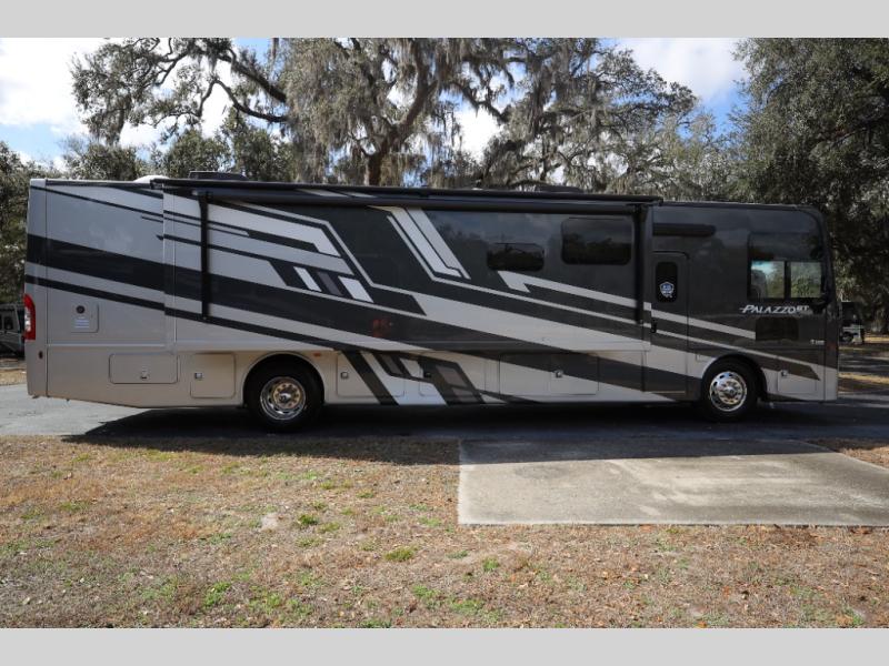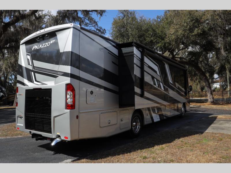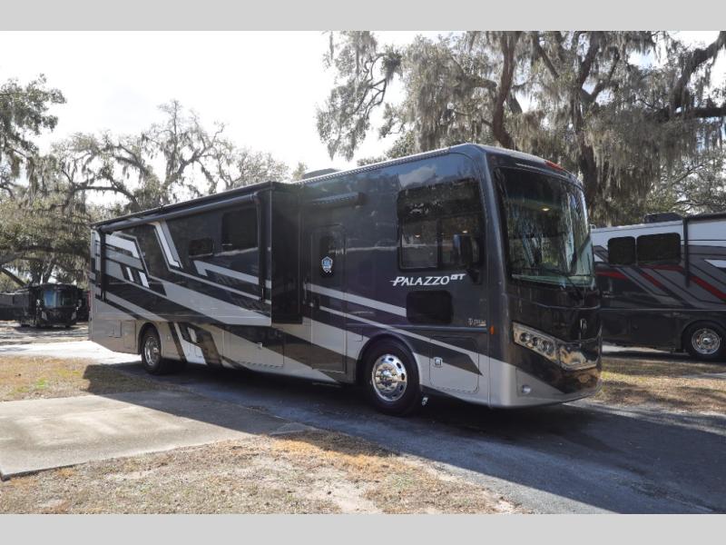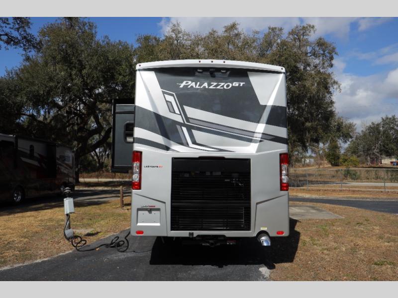 Start traveling affordably with the ultimate comfort and conveniences with any one of these Thor Motor Coach Palazzo GT Class A diesel motorhomes! They are built on a robust foundation with the Freightliner XC-S straight rail chassis with Atlas foundation, and powered by a Cummins diesel engine. The full body paint package with gel-coated sidewalls will turn heads on the highway and the invisible front paint protection will protect it from road debris. The inviting interiors have everything you need to feel right at home with features like an electric fireplace, easy-to-maintain rolled vinyl flooring, solid surface countertops, and residential refrigerator to fit your whole grocery haul. Come find your favorite one today!