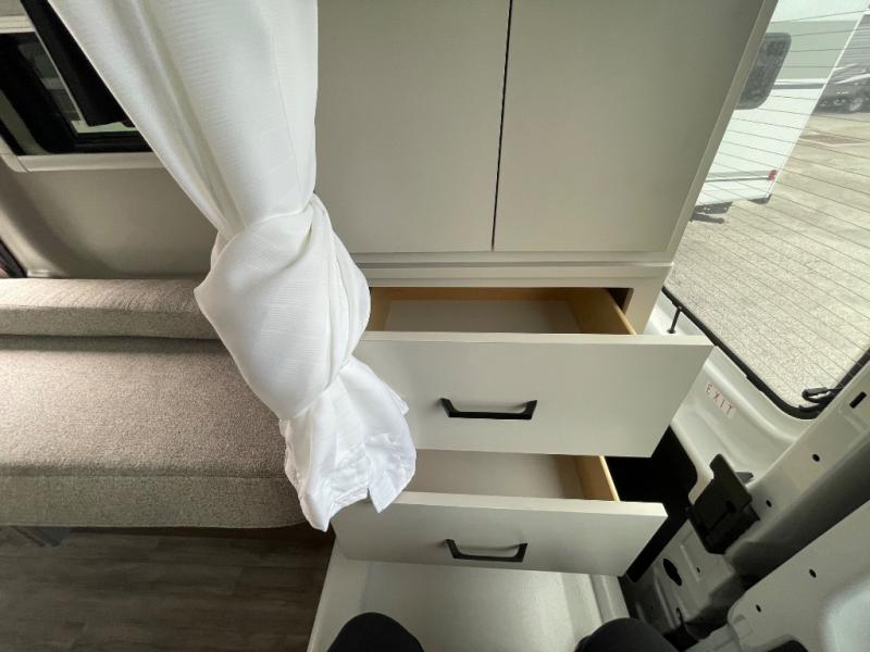 Go on your greatest adventures with this motorhome! After you've been driving all day, you can freshen up in the rear wet bath that includes a closet to keep everything tidy. There is a single burner induction portable cooktop and microwave oven to prepare meals, plus a single door 12V electric refrigerator for food storage. You will also appreciate the 10' Thule awning with LED lights to protect you rain or shine. Inside, you'll find 51" x 74" twin bed sleeper sofas with a lagun table system to move the table where you like it, and there is a 24" Smart TV so you can watch a movie if you choose.