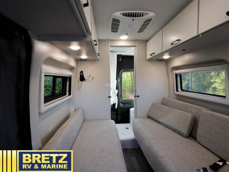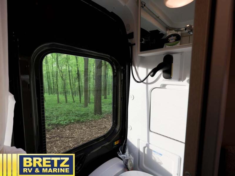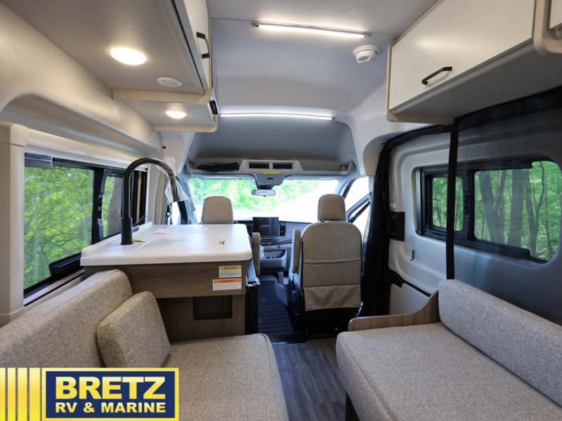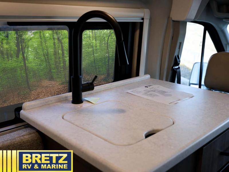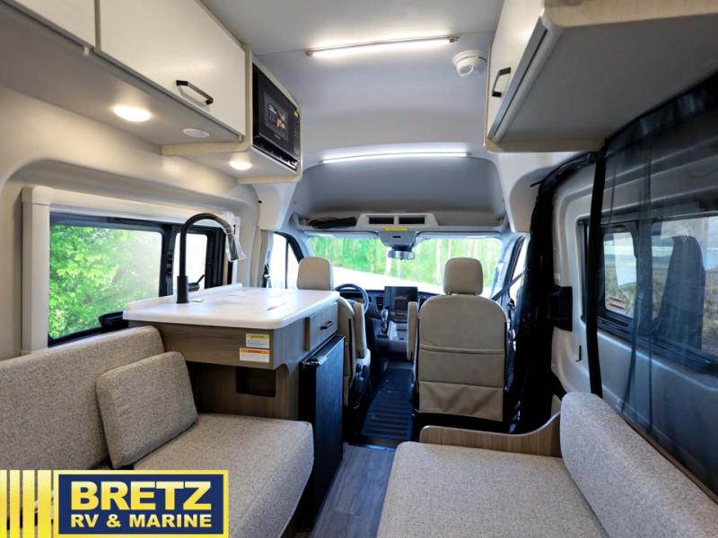With any Palladium Class B gas motorhome by Thor Motor Coach, you’re set up to leave pavement behind without giving up comfort. Built on the Ford Transit 148" wheelbase AWD chassis, complete with body lift and all-terrain tires, these vans are ready for forest roads, trailheads, and sketchy gravel lots that regular campers avoid. Once you’re parked, the Thule® lateral arm power awning with integrated LED lighting turns the campsite into an outdoor lounge, and large opening side windows with blackout panels keep things bright by day and cozy at night. Inside, you’ll find flat-panel cabinetry, cassette shades, residential vinyl flooring, and a smartly laid-out galley with pressed countertops and an undermount stainless steel sink that make the interior feel more like a tiny designer apartment than a van. Off-grid is where these rigs really shine.