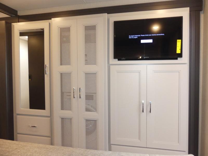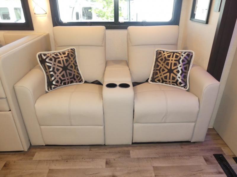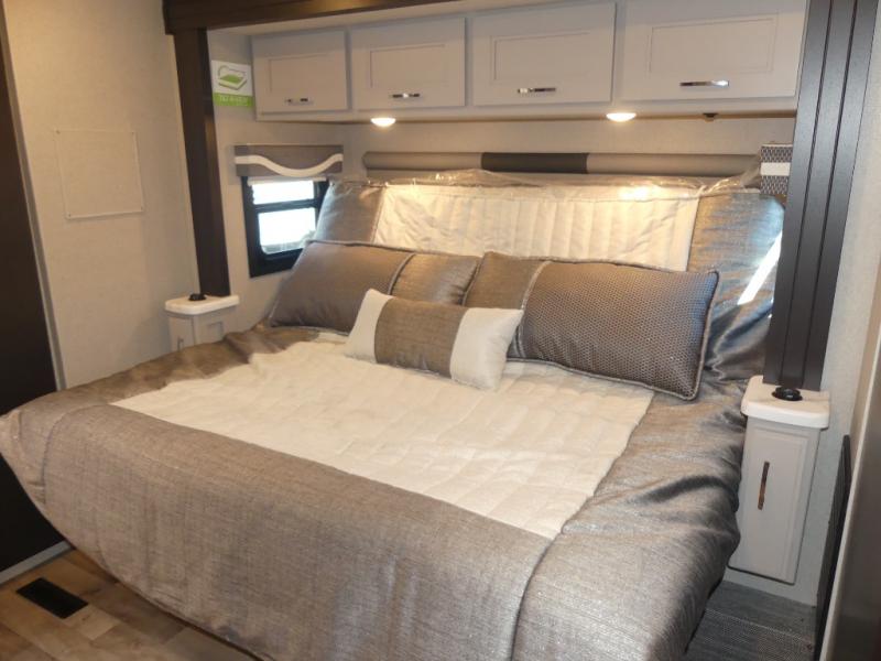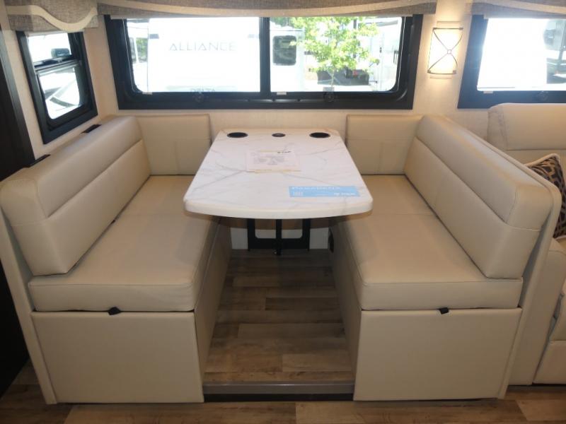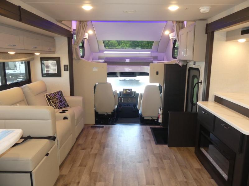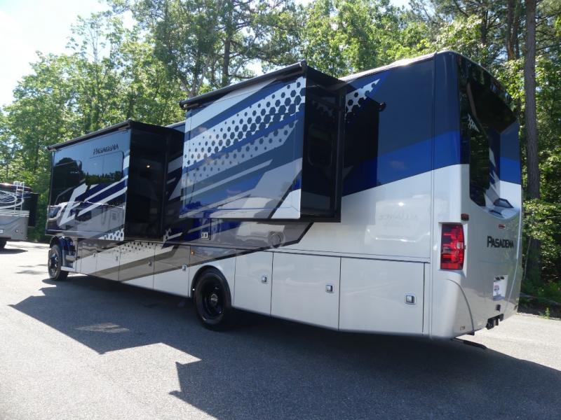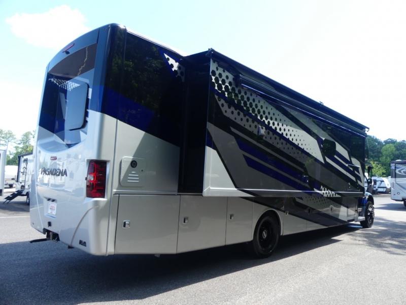 With any Pasadena Super C diesel motorhome by Thor Motor Coach, the rotocast basement pass-through storage compartments are durable and easy to clean. Other capabilities include the automotive dash with Android Auto and/or Apple CarPlay on a large 10.1" touch screen when you plug in your phone, and a side view camera system, plus a significant gross combined vehicle rating of the chassis allows plenty of pulling capacity even when fully loaded. There is even solar onboard and a Winegard ConnecT 5G system to stay connected. The S2RV Freightliner chassis with Atlas foundation might be the reason you looked at this coach, yet all the other features might be why you decide to go big and choose a Pasadena such as the residential linoleum throughout, the leatherette home theater seating with footrests, the solid surface countertops and designer backsplash in the kitchen, and the list continues!