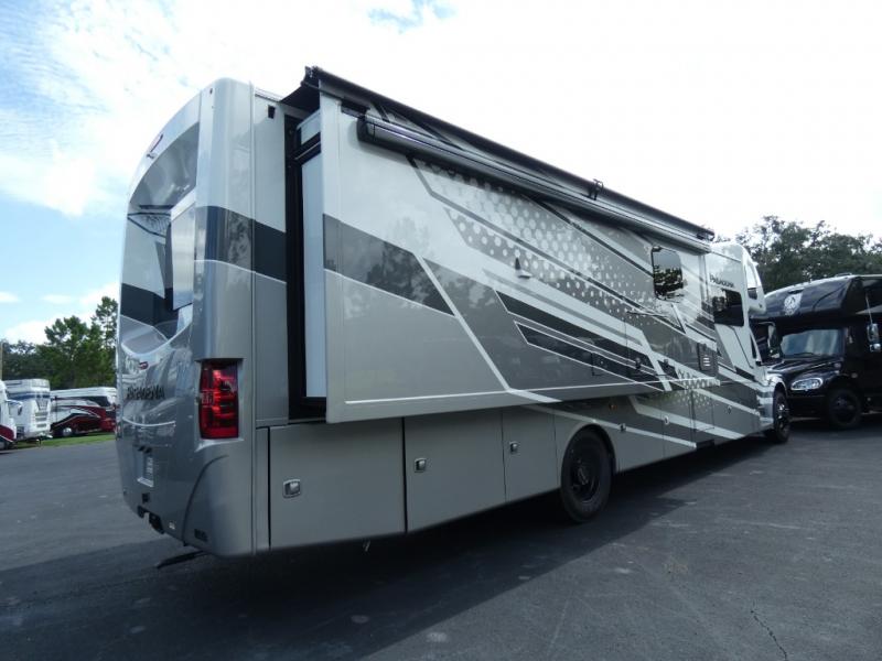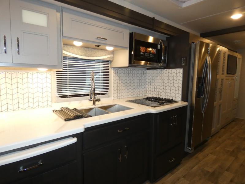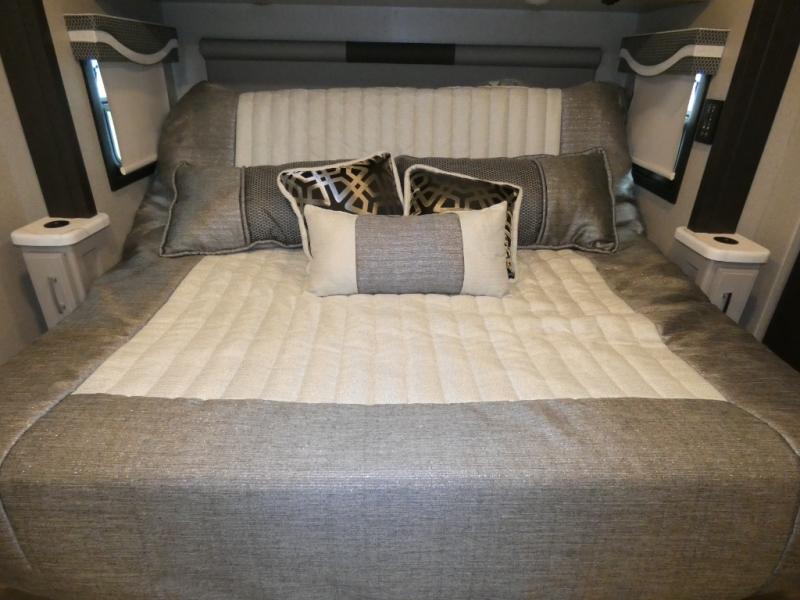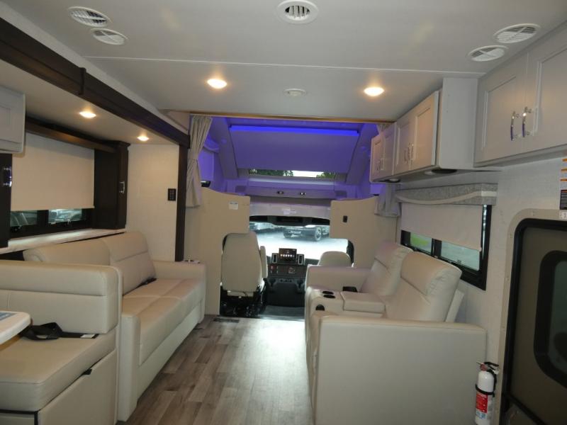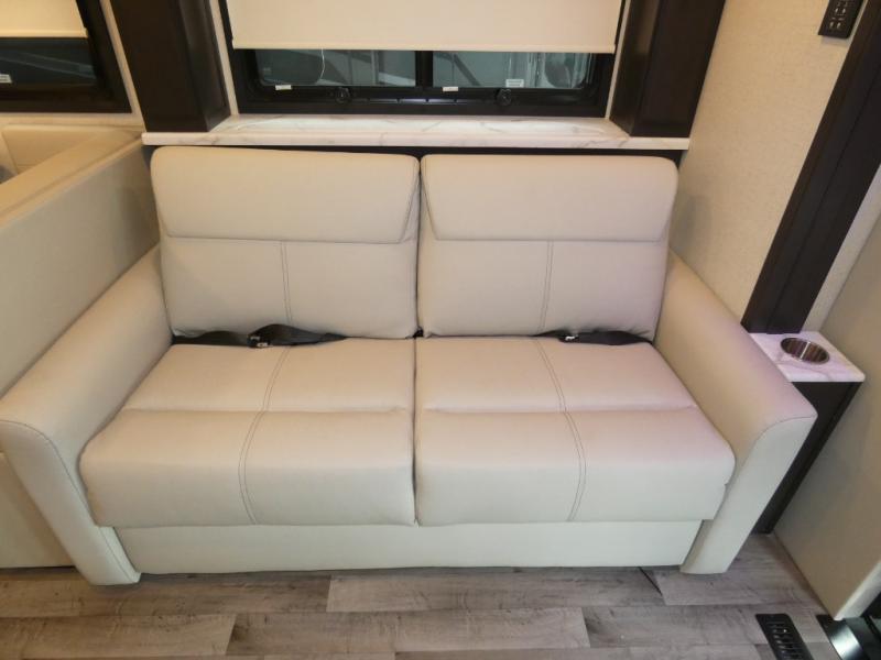 With any Pasadena Super C diesel motorhome by Thor Motor Coach, the rotocast basement pass-through storage compartments are durable and easy to clean. Other capabilities include the automotive dash with Android Auto and/or Apple CarPlay on a large 10.1" touch screen when you plug in your phone, and a side view camera system, plus a significant gross combined vehicle rating of the chassis allows plenty of pulling capacity even when fully loaded. There is even solar onboard and a Winegard ConnecT 5G system to stay connected. The S2RV Freightliner chassis with Atlas foundation might be the reason you looked at this coach, yet all the other features might be why you decide to go big and choose a Pasadena such as the residential linoleum throughout, the leatherette home theater seating with footrests, the solid surface countertops and designer backsplash in the kitchen, and the list continues!