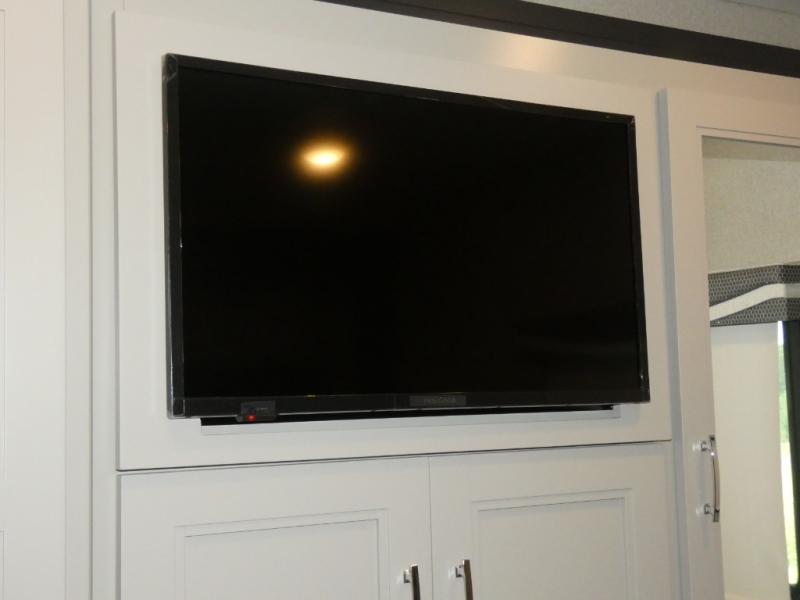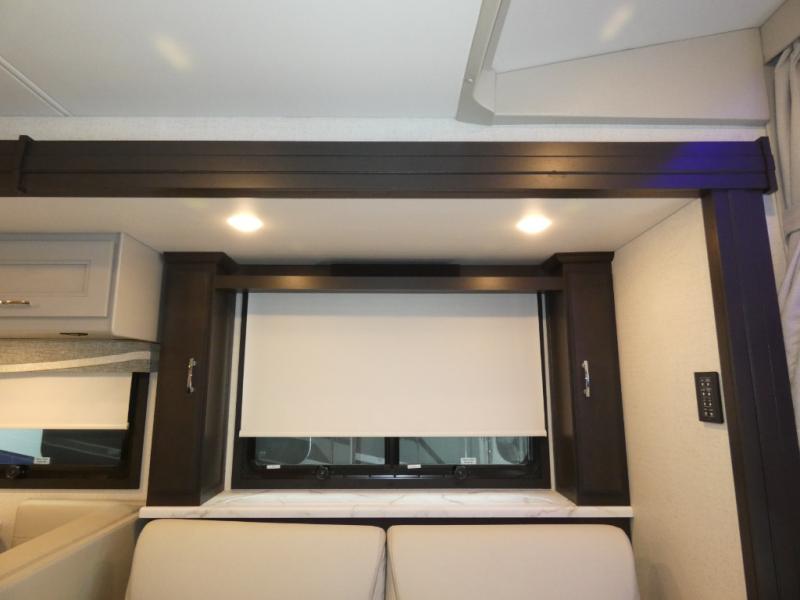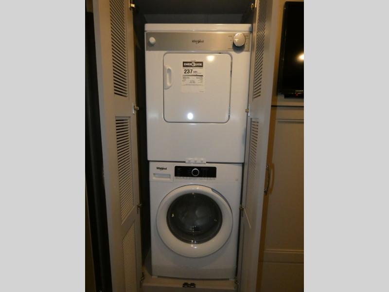 You will feel right at home in this motorhome! It features a rear private bedroom with a 72" x 80" Tilt-A-View inclining king bed to lay your head on at night while you watch a movie across from the 32" Smart LED TV, plus there is a closet and an area with stackable washer and dryer prep for clean clothes throughout your entire trip. Speaking of clean, you can clean up each morning in the full bathroom with the 30" x 42" shower then head to the kitchen to whip up a delicious breakfast with the two burner high-output range with single induction cooktop. You can enjoy your meals at the booth dinette and relax by the fireplace on either the 68" sofa or theater seating. There is also a 52" x 80" bunk over cab area that can be used as an extra sleeping or storage space!