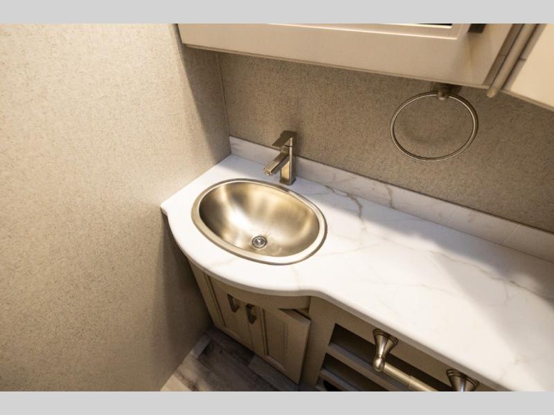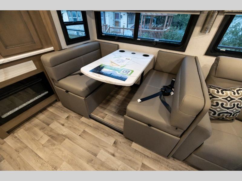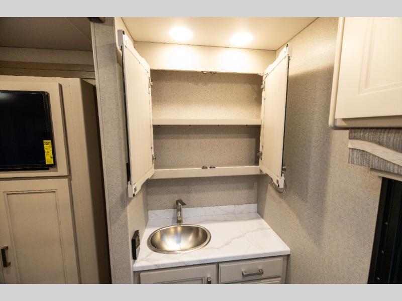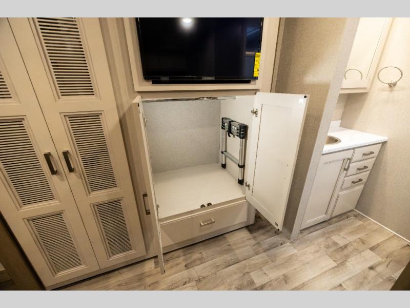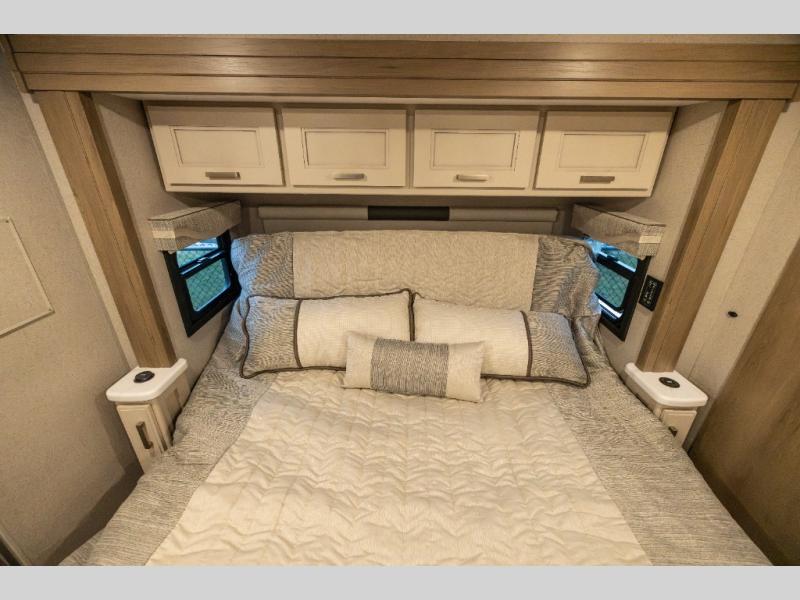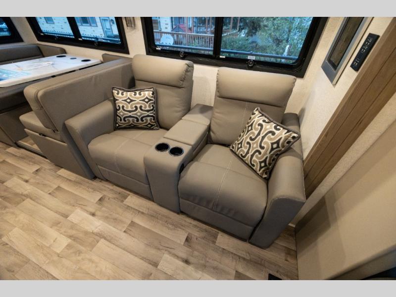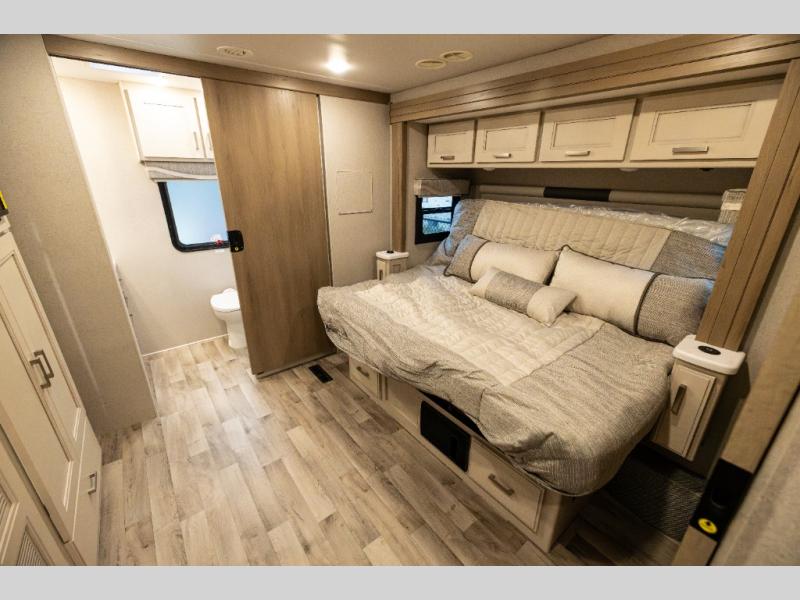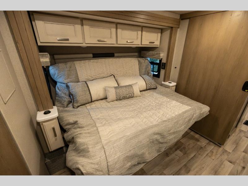 With any Pasadena Super C diesel motorhome by Thor Motor Coach, the rotocast basement pass-through storage compartments are durable and easy to clean. Other capabilities include the automotive dash with Android Auto and/or Apple CarPlay on a large 10.1" touch screen when you plug in your phone, and a side view camera system, plus a significant gross combined vehicle rating of the chassis allows plenty of pulling capacity even when fully loaded. There is even solar onboard and a Winegard ConnecT 5G system to stay connected. The S2RV Freightliner chassis with Atlas foundation might be the reason you looked at this coach, yet all the other features might be why you decide to go big and choose a Pasadena such as the residential linoleum throughout, the leatherette home theater seating with footrests, the solid surface countertops and designer backsplash in the kitchen, and the list continues!
