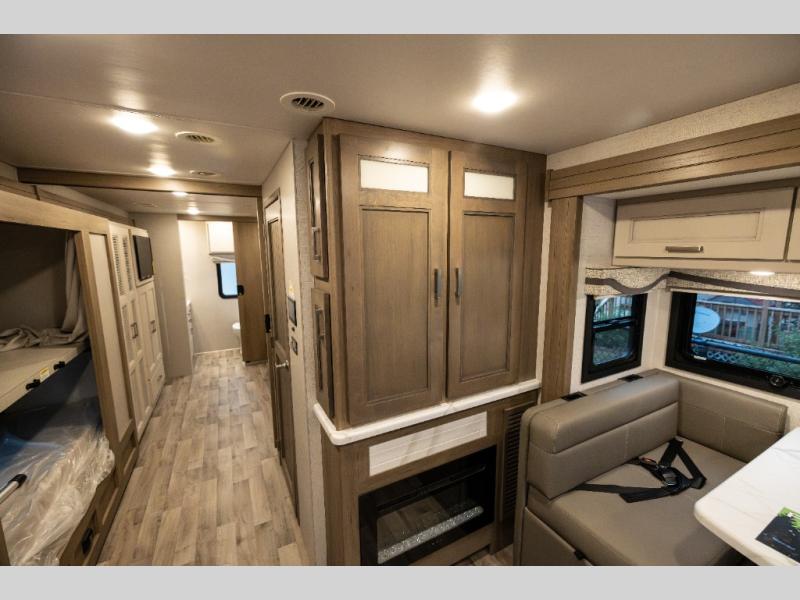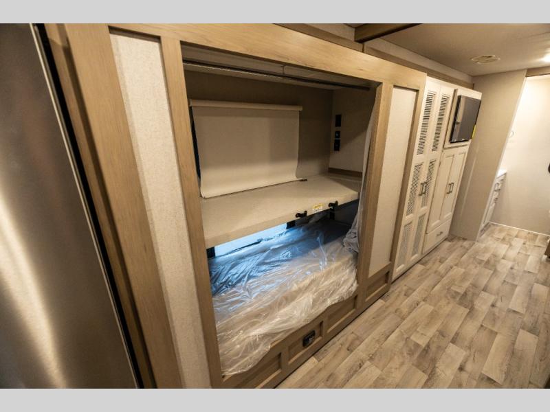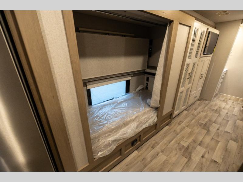 Get ready for a trip of a lifetime each and every time you hit the road in this Super C diesel coach! With the power and smoothness of the ride, the driver might not want to stop very often when they get to experience air ride adjustable cockpit seating for the driver and passenger seats. The cook will have a residential refrigerator, a two-burner gas range top, a convection microwave, a pantry and a 78" dream dinette is provided. The kids or your guests will love sleeping on the bunk beds and the cab-over bunk, plus the 27" x 74" bunk beds furnish more sleeping space. You will be able to relax and unwind while sleeping on a 72" x 80" Tilt-A-View inclining king bed in privacy of the bedroom. Relaxation is ensured thanks to the full rear bathroom equipped with everything you need to take care of yourself, this unit also features a half bath adding more comfort for your family or guests!