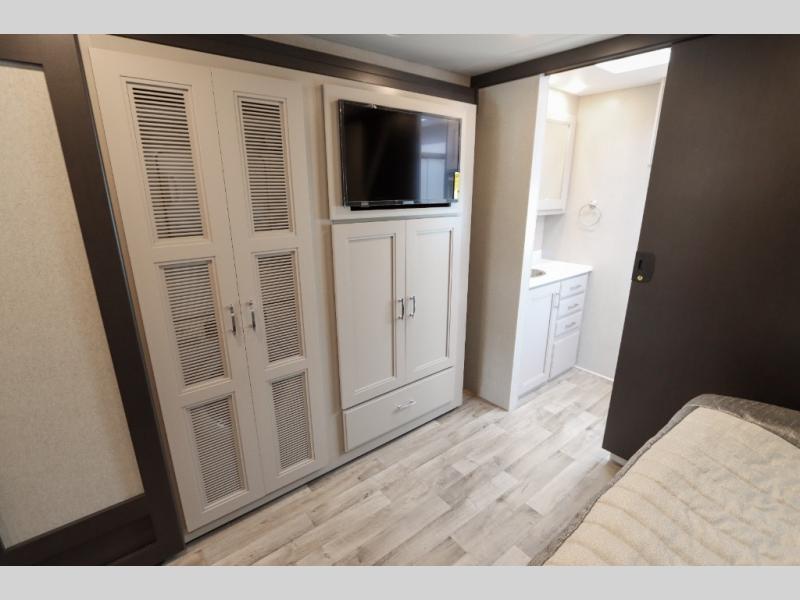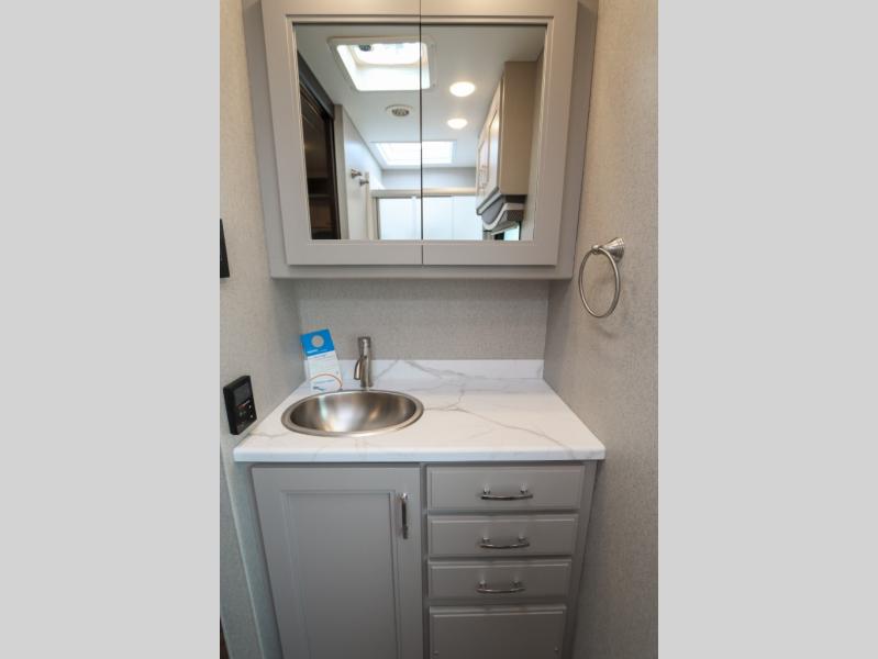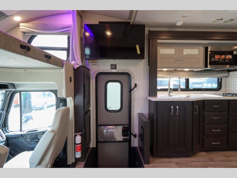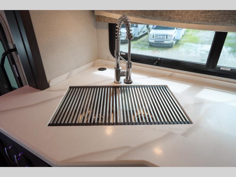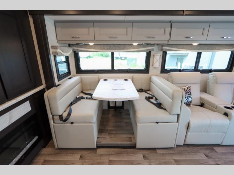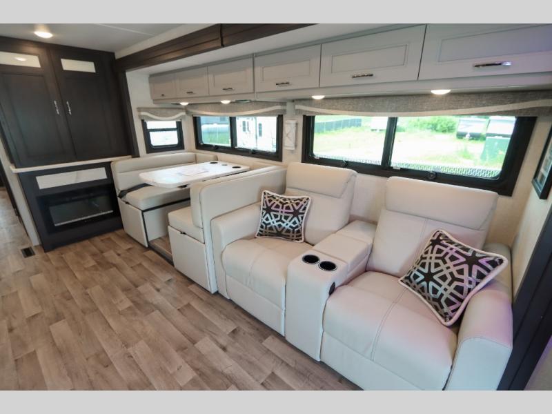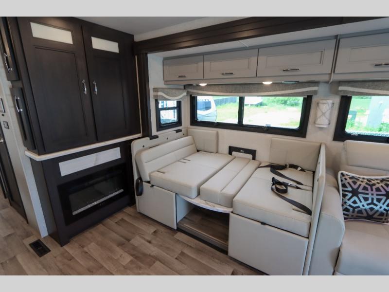 With any Pasadena Super C diesel motorhome by Thor Motor Coach, the rotocast basement pass-through storage compartments are durable and easy to clean. Other capabilities include the automotive dash with Android Auto and/or Apple CarPlay on a large 10.1" touch screen when you plug in your phone, and a side view camera system, plus a significant gross combined vehicle rating of the chassis allows plenty of pulling capacity even when fully loaded. There is even solar onboard and a Winegard ConnecT 5G system to stay connected. The S2RV Freightliner chassis with Atlas foundation might be the reason you looked at this coach, yet all the other features might be why you decide to go big and choose a Pasadena such as the residential linoleum throughout, the leatherette home theater seating with footrests, the solid surface countertops and designer backsplash in the kitchen, and the list continues!