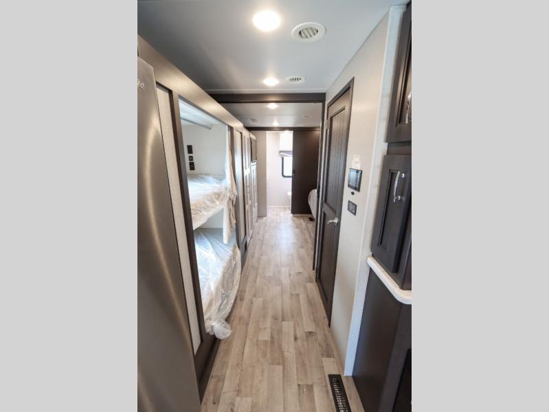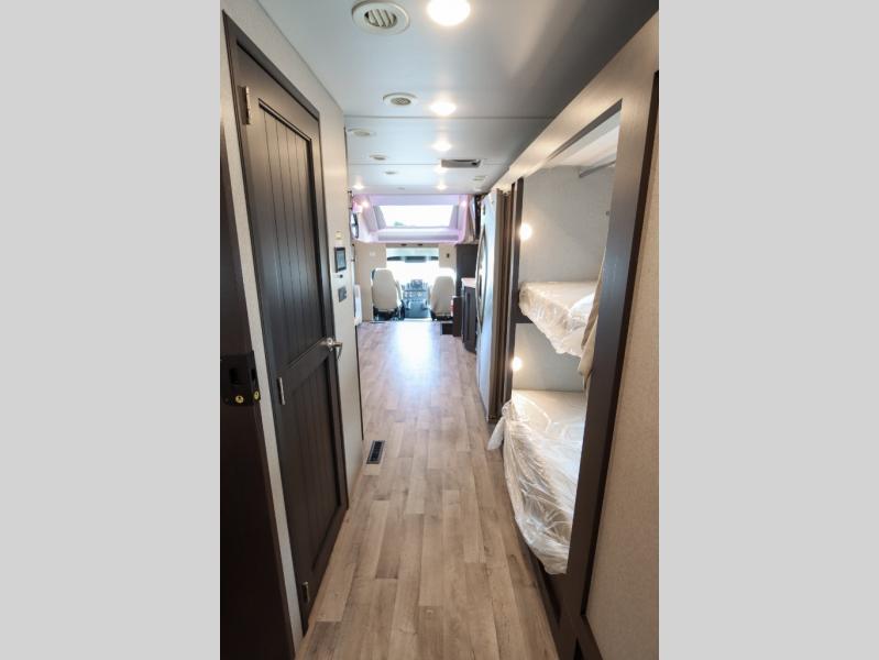 Get ready for a trip of a lifetime each and every time you hit the road in this Super C diesel coach! With the power and smoothness of the ride, the driver might not want to stop very often when they get to experience air ride adjustable cockpit seating for the driver and passenger seats. The cook will have a residential refrigerator, a two-burner gas range top, a convection microwave, a pantry and a 78" dream dinette is provided. The kids or your guests will love sleeping on the bunk beds and the cab-over bunk, plus the 27" x 74" bunk beds furnish more sleeping space. You will be able to relax and unwind while sleeping on a 72" x 80" Tilt-A-View inclining king bed in privacy of the bedroom. Relaxation is ensured thanks to the full rear bathroom equipped with everything you need to take care of yourself, this unit also features a half bath adding more comfort for your family or guests!