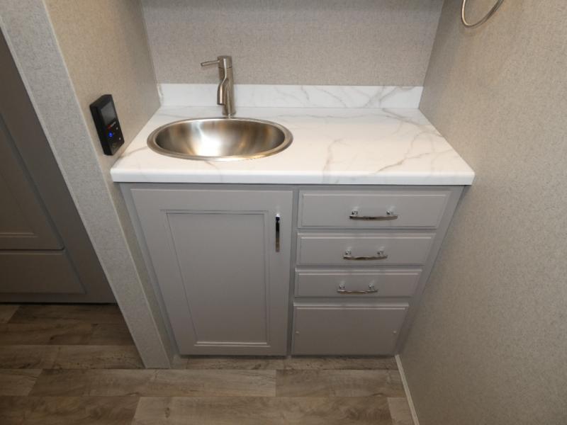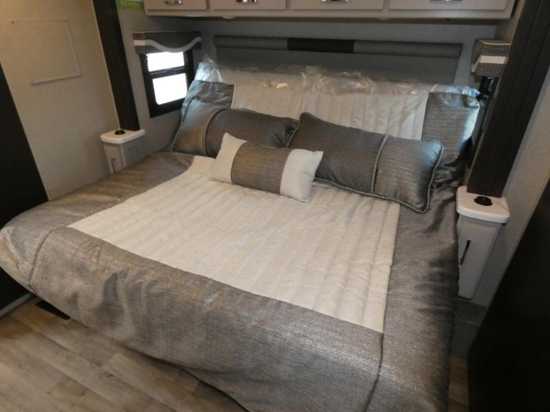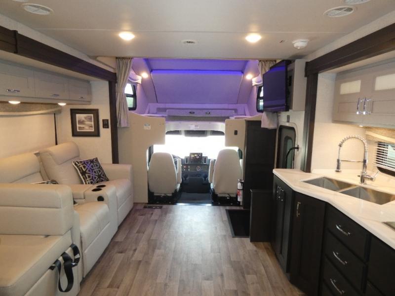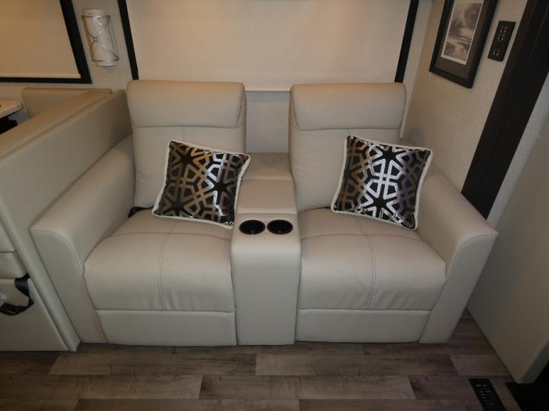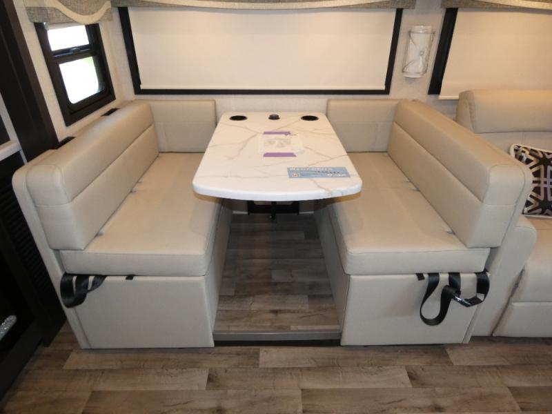With any Pasadena Super C diesel motorhome by Thor Motor Coach, the rotocast basement pass-through storage compartments are durable and easy to clean. Other capabilities include the automotive dash with Android Auto and/or Apple CarPlay on a large 10.1" touch screen when you plug in your phone, and a side view camera system, plus a significant gross combined vehicle rating of the chassis allows plenty of pulling capacity even when fully loaded. There is even solar onboard and a Winegard ConnecT 5G system to stay connected. The S2RV Freightliner chassis with Atlas foundation might be the reason you looked at this coach, yet all the other features might be why you decide to go big and choose a Pasadena such as the residential linoleum throughout, the leatherette home theater seating with footrests, the solid surface countertops and designer backsplash in the kitchen, and the list continues!