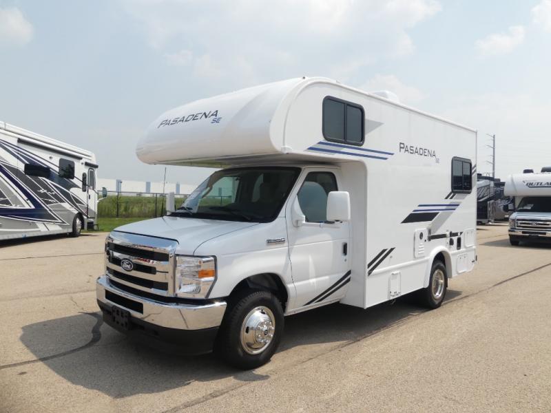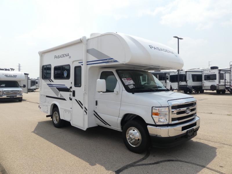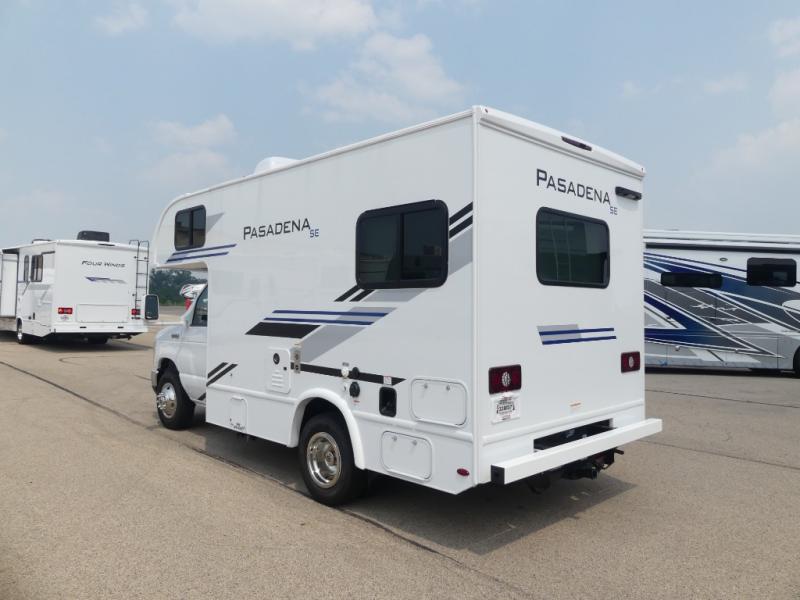 With any Pasadena SE Class C gas motorhome by Thor Motor Coach, you will find convenient amenities, a modern interior, and a reliable Ford E-Series chassis to power your adventures. There is a one-piece fiberglass front cap, and premium one-piece roofing for added strength. Residential vinyl flooring will be easy to keep clean, and you'll love the LED lighting, pressed laminate countertops throughout, and full-extensions ball-bearing drawer guides. These motorhomes also include a generator and a 30-amp shoreline power cord to keep you going, along with a tankless water heater to ensure your comfort!
