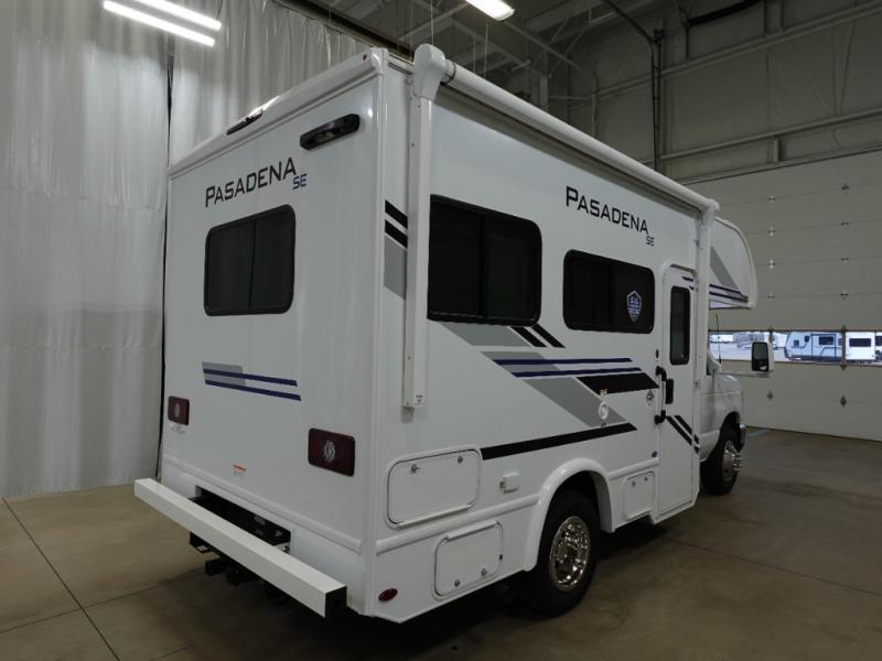 With any Pasadena SE Class C gas motorhome by Thor Motor Coach, you will find convenient amenities, a modern interior, and a reliable Ford E-Series chassis to power your adventures. There is a one-piece fiberglass front cap, and premium one-piece roofing for added strength. Residential vinyl flooring will be easy to keep clean, and you'll love the LED lighting, pressed laminate countertops throughout, and full-extensions ball-bearing drawer guides. These motorhomes also include a generator and a 30-amp shoreline power cord to keep you going, along with a tankless water heater to ensure your comfort!