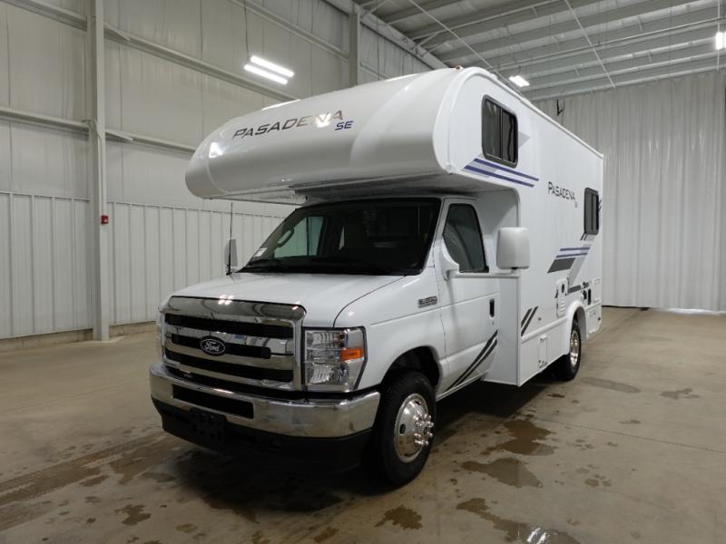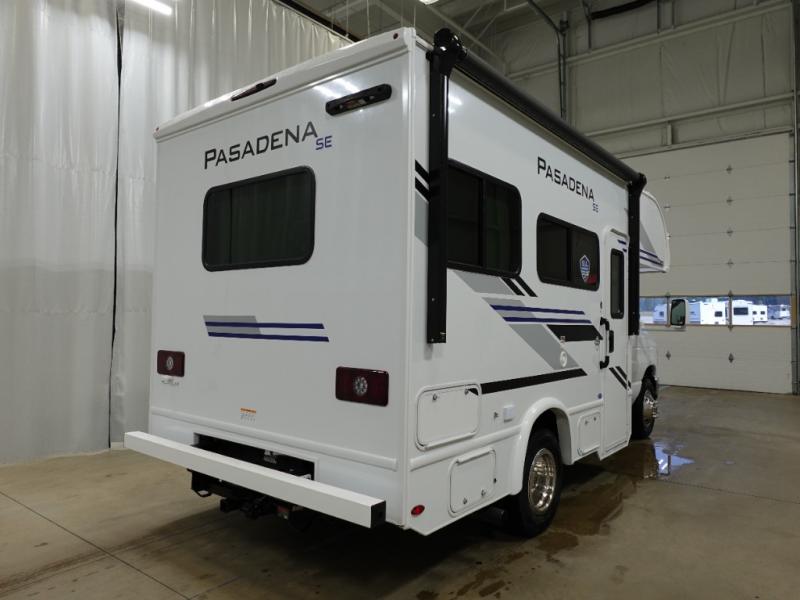 With any Pasadena SE Class C gas motorhome by Thor Motor Coach, you will find convenient amenities, a modern interior, and a reliable Ford E-Series chassis on select models to power your adventures. There is a one-piece fiberglass front cap, and premium one-piece roofing for added strength. Residential vinyl flooring will be easy to keep clean, and you'll love the LED lighting, pressed laminate countertops throughout, and full-extensions ball-bearing drawer guides. These motorhomes also include a generator and a 30-amp shoreline power cord to keep you going, along with a tankless water heater to ensure your comfort!