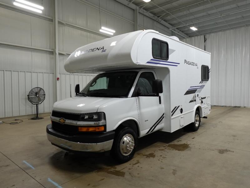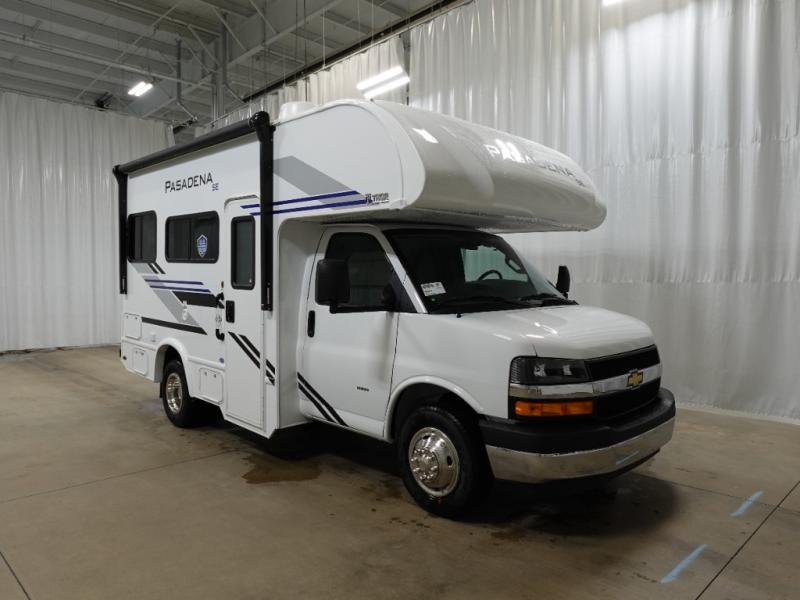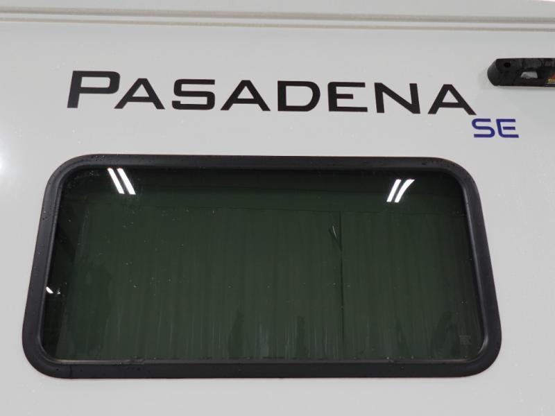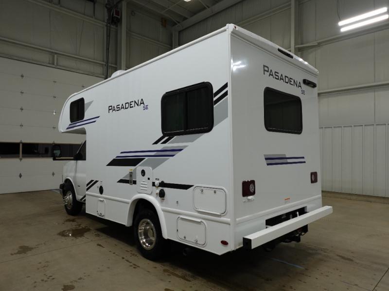 With any Pasadena SE Class C gas motorhome by Thor Motor Coach, you will find convenient amenities, a modern interior, and a reliable Chevy chassis on select models to power your adventures. There is a one-piece fiberglass front cap, and premium one-piece roofing for added strength. Residential vinyl flooring will be easy to keep clean, and you'll love the LED lighting, pressed laminate countertops throughout, and full-extensions ball-bearing drawer guides. These motorhomes also include a generator and a 30-amp shoreline power cord to keep you going, along with a tankless water heater to ensure your comfort!