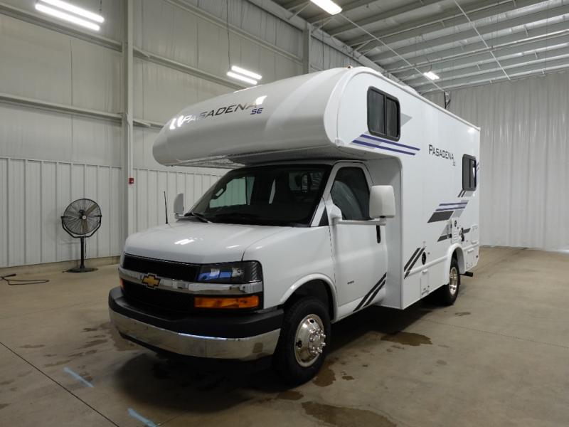 With any Pasadena SE Class C gas motorhome by Thor Motor Coach, you will find convenient amenities, a modern interior, and a reliable Chevy chassis. There is a one-piece fiberglass front cap, and premium one-piece roofing for added strength. Residential vinyl flooring will be easy to keep clean, and you'll love the LED lighting, pressed laminate countertops throughout, and full-extensions ball-bearing drawer guides. These motorhomes also include a generator and a 30-amp shoreline power cord to keep you going, along with a tankless water heater to ensure your comfort!