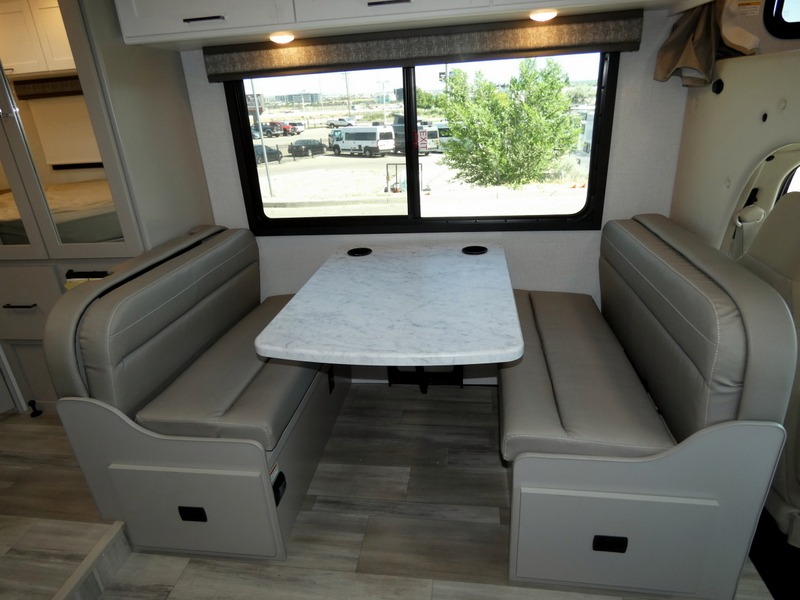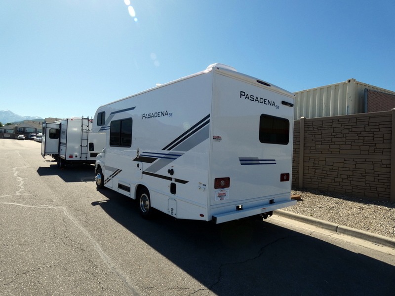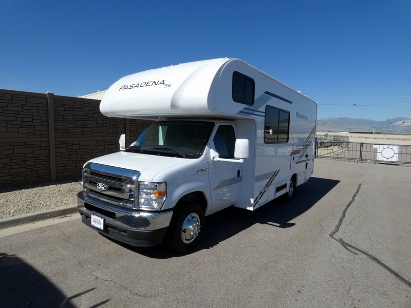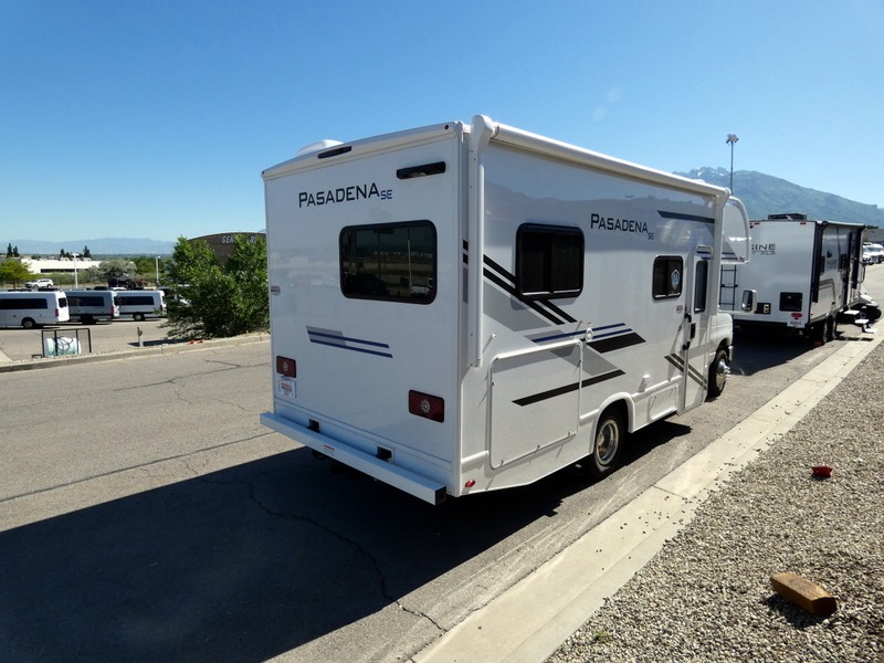 With any Pasadena SE Class C gas motorhome by Thor Motor Coach, you will find convenient amenities, a modern interior, and a reliable Ford E-Series chassis on select models to power your adventures. There is a one-piece fiberglass front cap, and premium one-piece roofing for added strength. Residential vinyl flooring will be easy to keep clean, and you'll love the LED lighting, pressed laminate countertops throughout, and full-extensions ball-bearing drawer guides. These motorhomes also include a generator and a 30-amp shoreline power cord to keep you going, along with a tankless water heater to ensure your comfort!