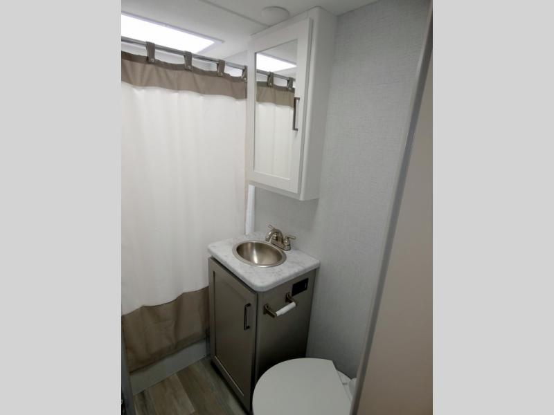 It won't be hard to find comfort in this coach for five! You can freshen up in the rear corner full bath once you've set up camp, then make lunch on the two burner gas cooktop or convection microwave with an air fryer. There is also a 12V refrigerator for cold items and a flip-up countertop for more space. Whether you dine at the Dream Dinette or take your plate outdoors under the 15' power awning, you're sure to have a great time in this motorhome. The rear corner full-size bed will provide a comfy place to rest your head at night, while your guests take the dinette and cab-over bunk!
