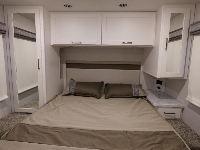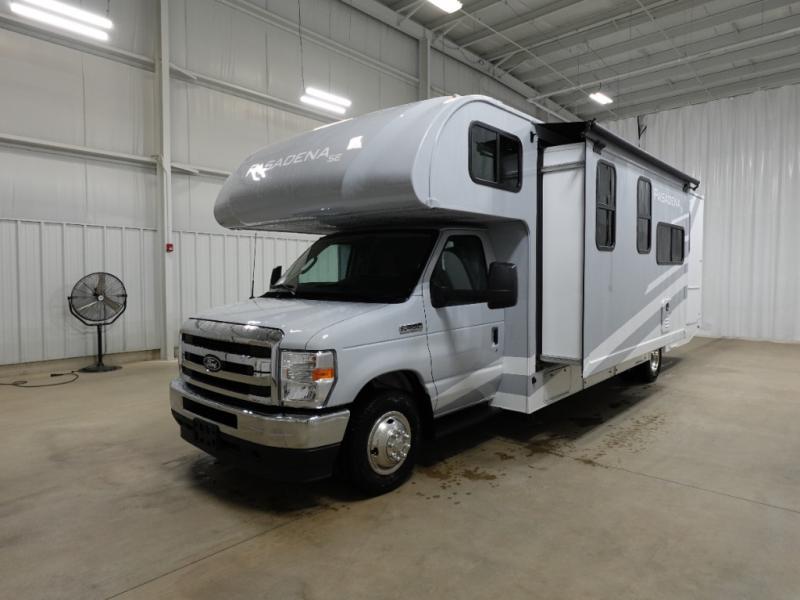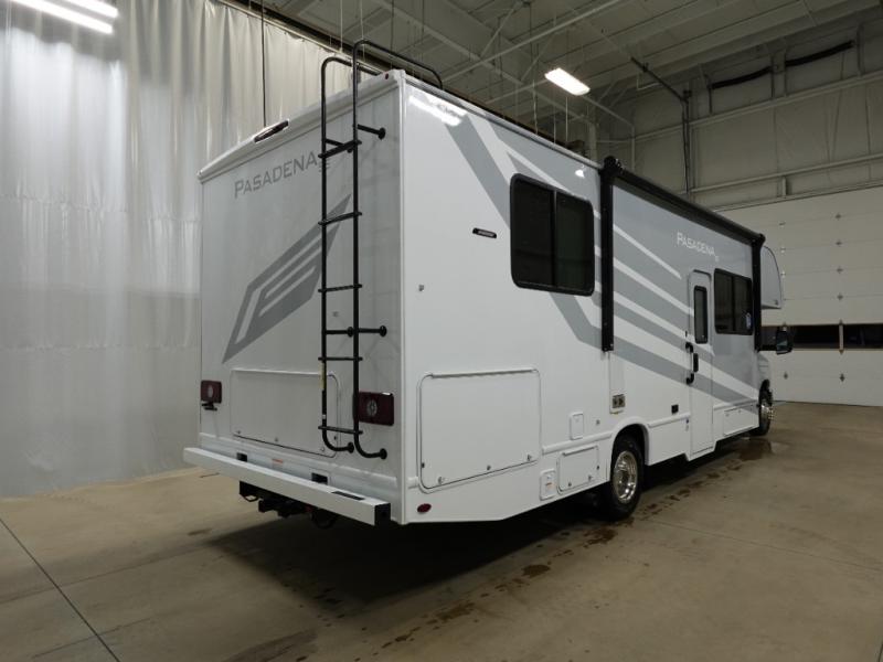 With any Pasadena SE Class C gas motorhome by Thor Motor Coach, you will find convenient amenities, a modern interior, and a reliable Ford E-Series chassis, to power your adventures. There is a one-piece fiberglass front cap, and premium one-piece roofing for added strength. Residential vinyl flooring will be easy to keep clean, and you'll love the LED lighting, pressed laminate countertops throughout, and full-extensions ball-bearing drawer guides. These motorhomes also include a generator and a 30-amp shoreline power cord to keep you going, along with a tankless water heater to ensure your comfort!