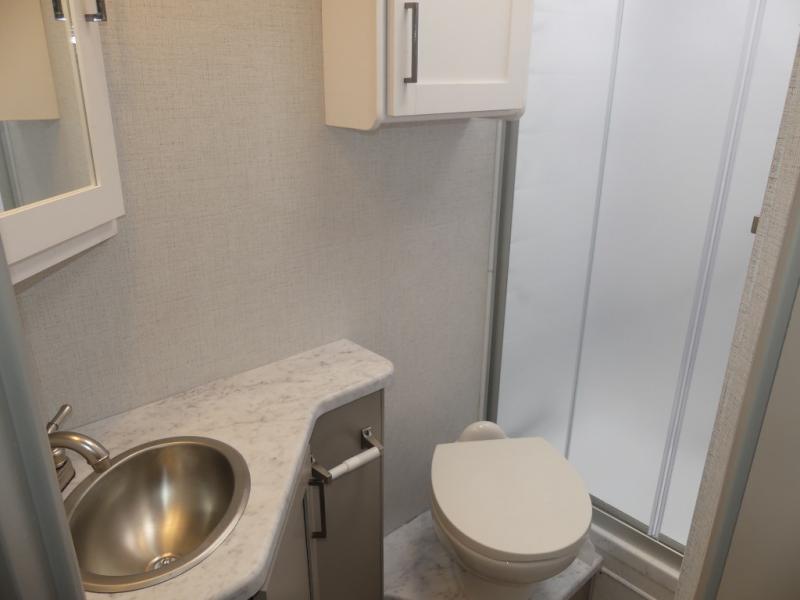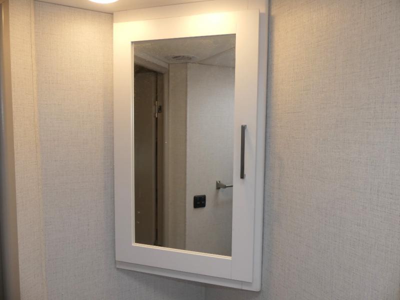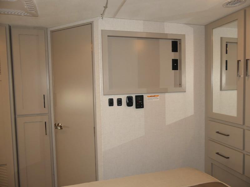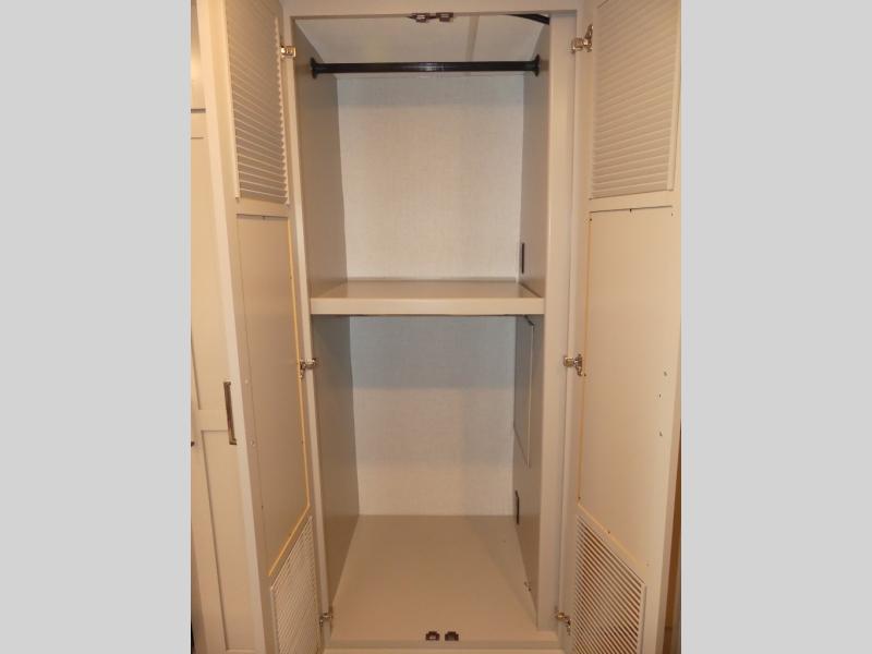 Pack your bags and head across the country in this double slide out coach. The Dream dinette and theater seating provide a place to dine, relax, and even let extra guests sleep over who don't claim the cab-over bunk. A three burner gas cooktop and microwave oven will let you create meals each day, and a 12V refrigerator will keep your drinks cold! The rear of this coach is shared with the full bath and semi-private bedroom with a privacy curtain. You're sure to get a great night's rest on the king bed, and there is a large bedroom closet to keep your clothes wrinkle-free. There is also a second closet with washer and dryer prep if you choose to add these appliances.