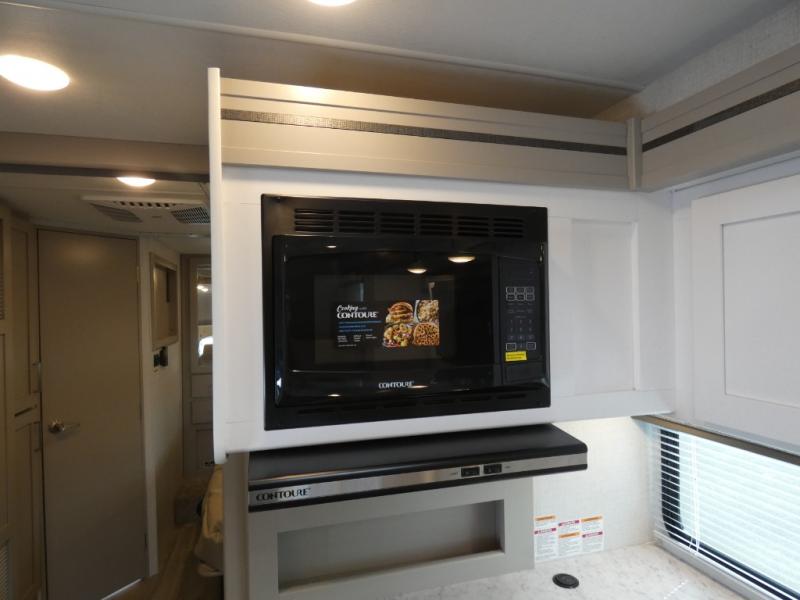 Pack your bags and head across the country in this double slide out coach. The Dream dinette and theater seating provide a place to dine, relax, and even let extra guests sleep over who don't claim the cab-over bunk. A three burner gas cooktop and microwave oven will let you create meals each day, and a 12V refrigerator will keep your drinks cold! The rear of this coach is shared with the full bath and semi-private bedroom with a privacy curtain. You're sure to get a great night's rest on the king bed, and there is a large bedroom closet to keep your clothes wrinkle-free. There is also a second closet with washer and dryer prep if you choose to add these appliances.