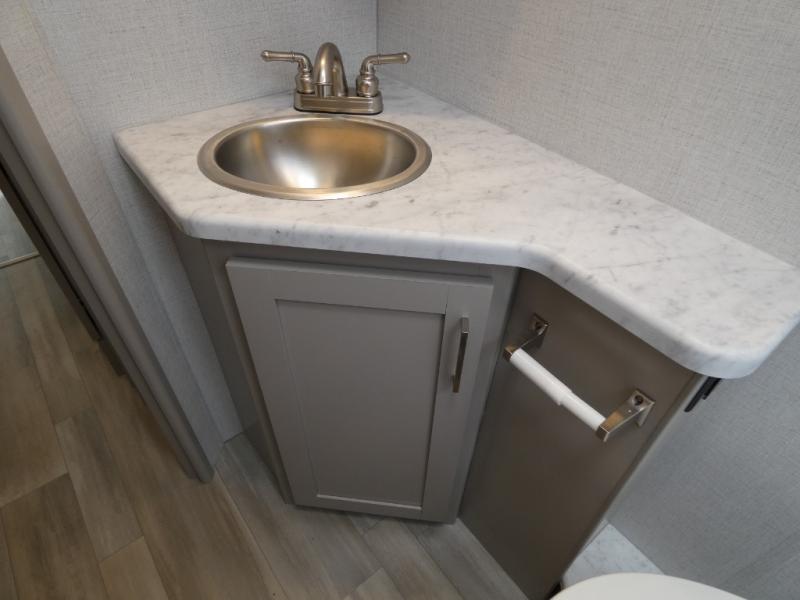Pack your bags and head across the country in this double slide out coach. The Dream dinette and theater seating provide a place to dine, relax, and even let extra guests sleep over who don't claim the cab-over bunk. A three burner gas cooktop and microwave oven will let you create meals each day, and a 12V refrigerator will keep your drinks cold! The rear of this coach is shared with the full bath and semi-private bedroom with a privacy curtain. You're sure to get a great night's rest on the king bed, and there is a large bedroom closet to keep your clothes wrinkle-free. There is also a second closet with washer and dryer prep if you choose to add these appliances.