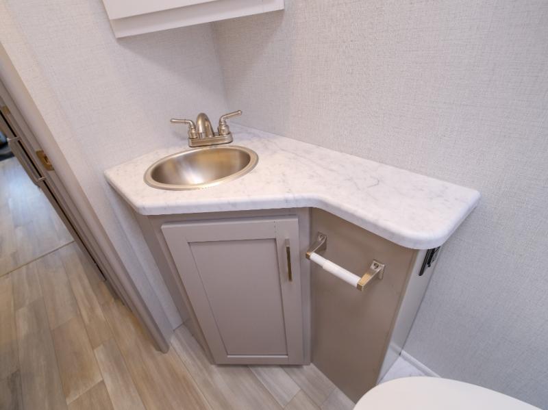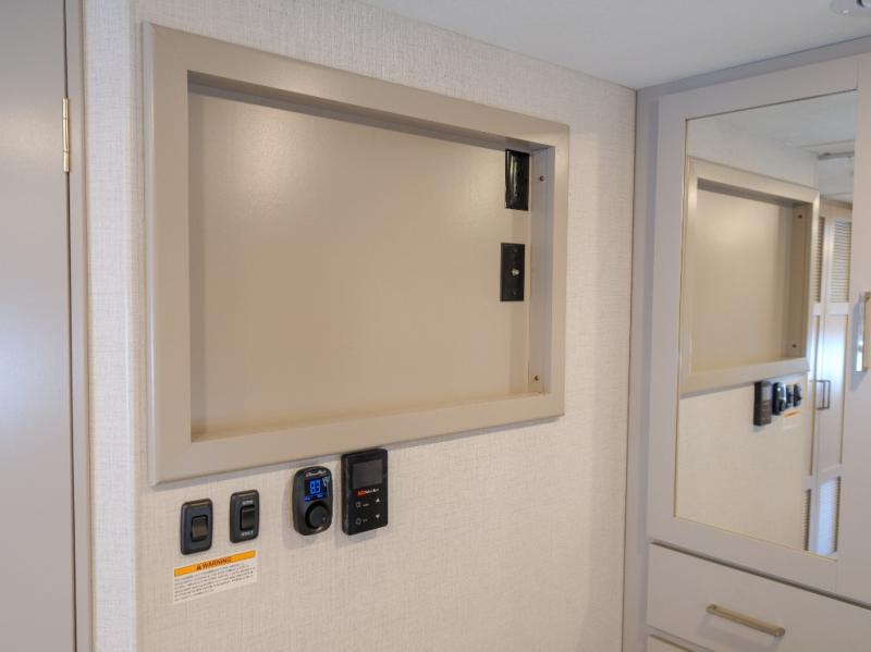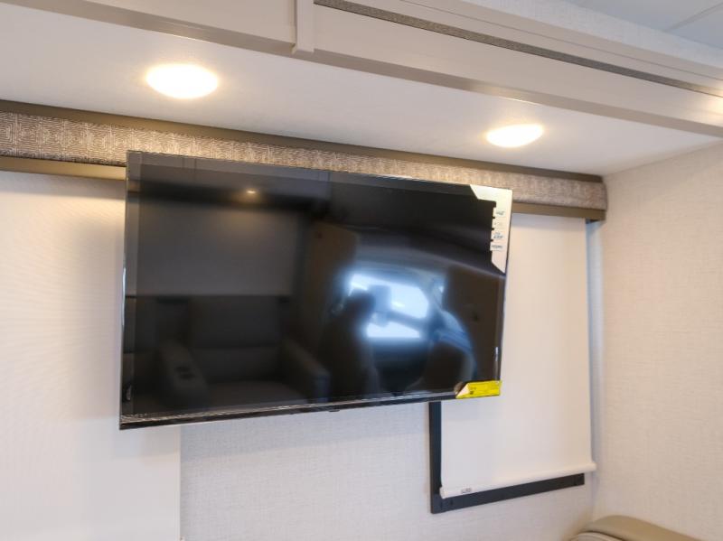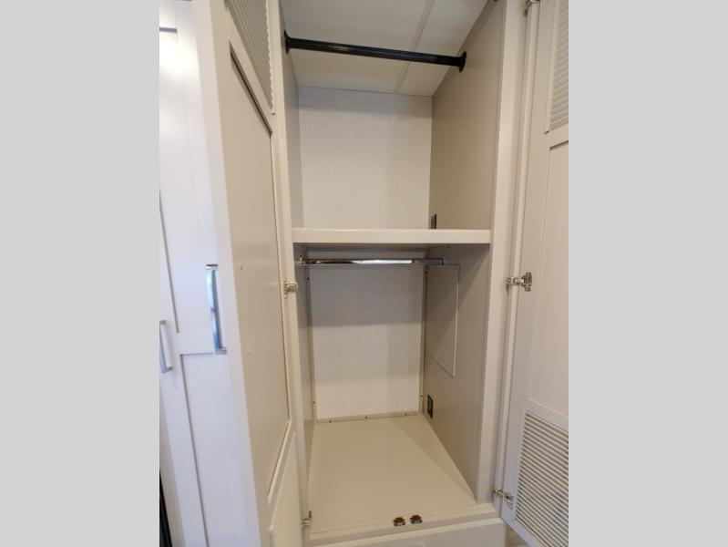 Pack your bags and head across the country in this double slide out coach. The Dream dinette and theater seating provide a place to dine, relax, and even let extra guests sleep over who don't claim the cab-over bunk. A three burner gas cooktop and microwave oven will let you create meals each day, and a 12V refrigerator will keep your drinks cold! The rear of this coach is shared with the full bath and semi-private bedroom with a privacy curtain. You're sure to get a great night's rest on the king bed, and there is a large bedroom closet to keep your clothes wrinkle-free. There is also a second closet with washer and dryer prep if you choose to add these appliances.
