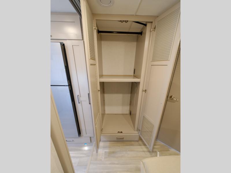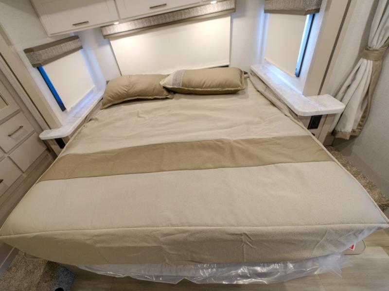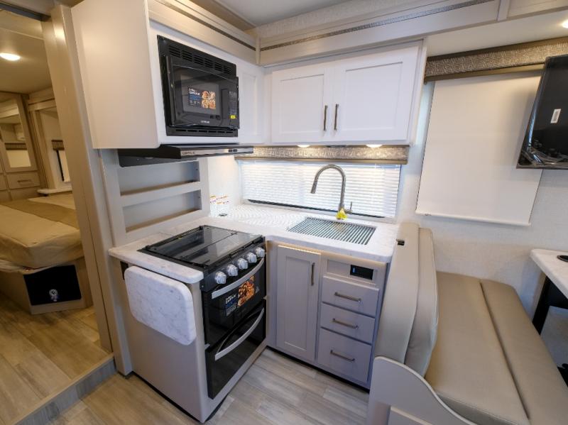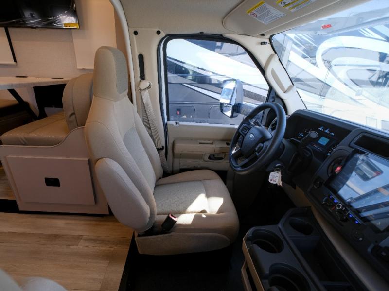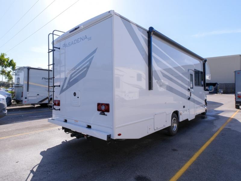 With any Pasadena SE Class C gas motorhome by Thor Motor Coach, you will find convenient amenities, a modern interior, and a reliable Ford E-Series chassis to power your adventures. There is a one-piece fiberglass front cap, and premium one-piece roofing for added strength. Residential vinyl flooring will be easy to keep clean, and you'll love the LED lighting, pressed laminate countertops throughout, and full-extensions ball-bearing drawer guides. These motorhomes also include a generator and a 30-amp shoreline power cord to keep you going, along with a tankless water heater to ensure your comfort!