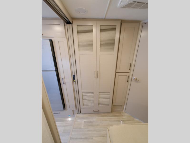 Pack your bags and head across the country in this double slide out coach. The Dream dinette and theater seating provide a place to dine, relax, and even let extra guests sleep over who don't claim the cab-over bunk. A three burner gas cooktop and microwave oven will let you create meals each day, and a 12V refrigerator will keep your drinks cold! The rear of this coach is shared with the full bath and semi-private bedroom with a privacy curtain. You're sure to get a great night's rest on the king bed, and there is a large bedroom closet to keep your clothes wrinkle-free.