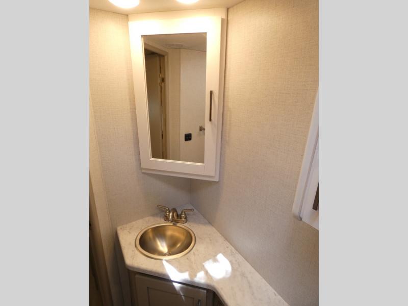 Pack your bags and head across the country in this double slide out coach. The Dream dinette and theater seating provide a place to dine, relax, and even let extra guests sleep over who don't claim the cab-over bunk. A three burner gas cooktop and microwave oven will let you create meals each day, and a 12V refrigerator will keep your drinks cold! The rear of this coach is shared with the full bath and semi-private bedroom with a privacy curtain. You're sure to get a great night's rest on the king bed, and there is a large bedroom closet to keep your clothes wrinkle-free.