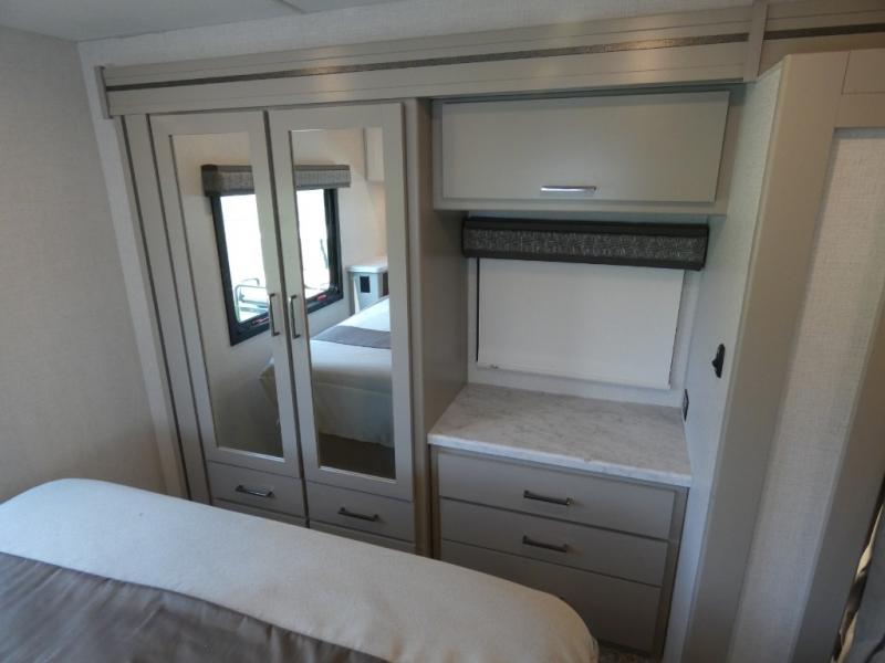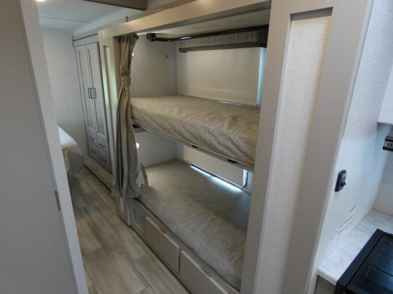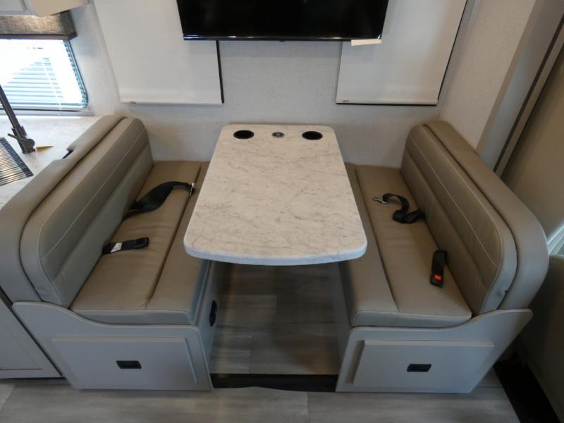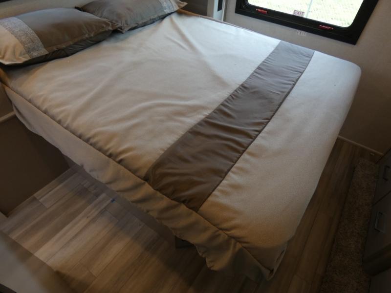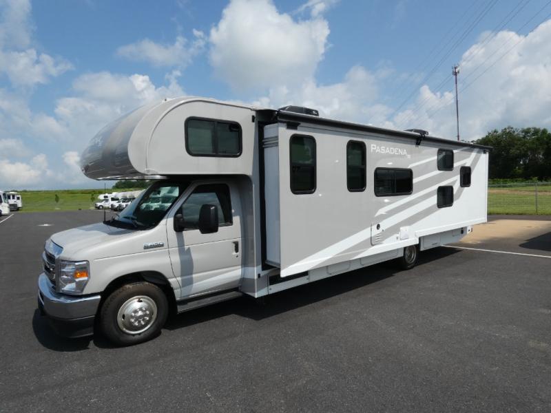 With any Pasadena SE Class C gas motorhome by Thor Motor Coach, you will find convenient amenities, a modern interior, and a reliable Ford E-Series chassis on select models to power your adventures. There is a one-piece fiberglass front cap, and premium one-piece roofing for added strength. Residential vinyl flooring will be easy to keep clean, and you'll love the LED lighting, pressed laminate countertops throughout, and full-extensions ball-bearing drawer guides. These motorhomes also include a generator and a 30-amp shoreline power cord to keep you going, along with a tankless water heater to ensure your comfort!