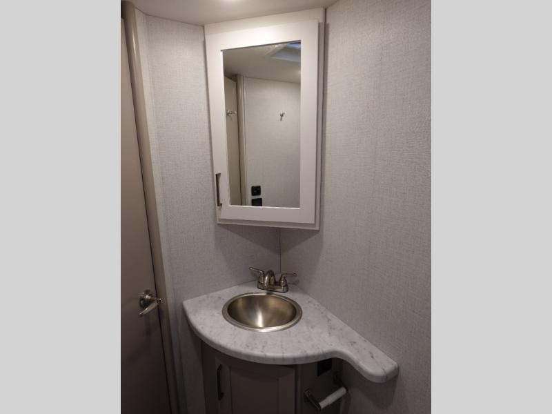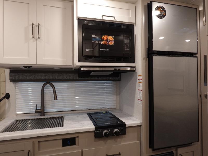 It won't be hard to find comfort in this coach for five! You can freshen up in the rear corner full bath once you've set up camp, then make lunch on the two burner gas cooktop or convection microwave with an air fryer. There is also a 12V refrigerator for cold items and a flip-up countertop for more space. Whether you dine at the Dream Dinette or take your plate outdoors under the 15' power awning, you're sure to have a great time in this motorhome. There is a semi-private bedroom with a 60" x 74" RV queen bed slide and bedroom TV prep if you want the option to watch movies in bed. And your guests can take the Dream Dinette and cab-over bunk at night!
