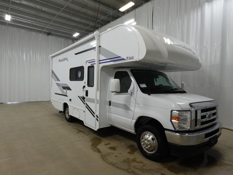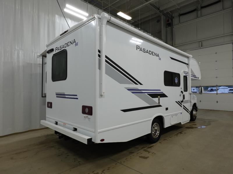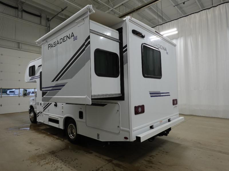 With any Pasadena SE Class C gas motorhome by Thor Motor Coach, you will find convenient amenities, a modern interior, and a reliable Ford E-Series chassis, to power your adventures. There is a one-piece fiberglass front cap, and premium one-piece roofing for added strength. Residential vinyl flooring will be easy to keep clean, and you'll love the LED lighting, pressed laminate countertops throughout, and full-extensions ball-bearing drawer guides. These motorhomes also include a generator and a 30-amp shoreline power cord to keep you going, along with a tankless water heater to ensure your comfort!