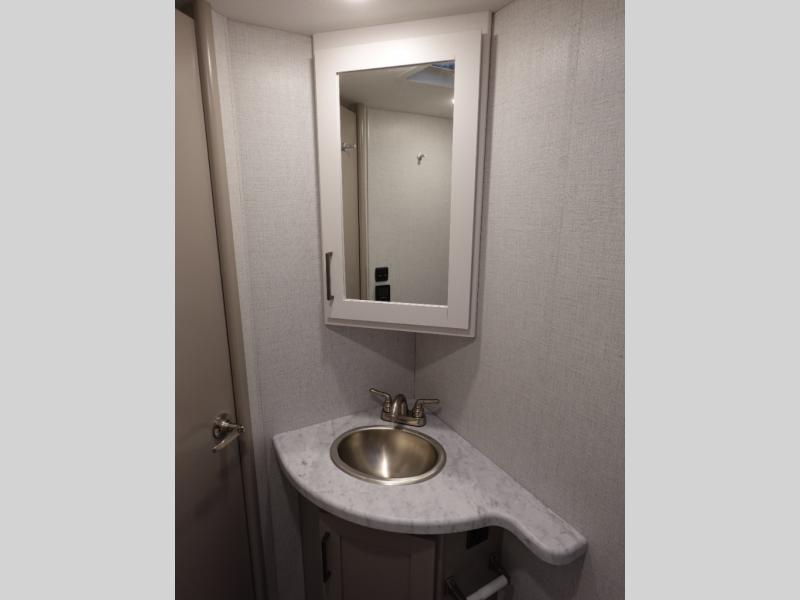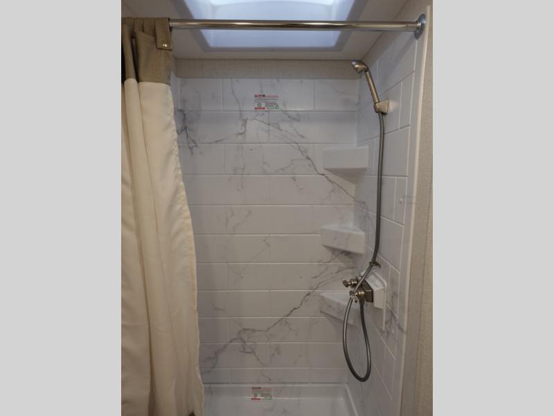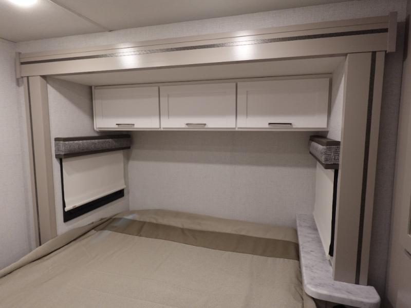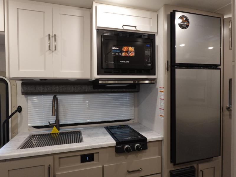 It won't be hard to find comfort in this coach for five! You can freshen up in the rear corner full bath once you've set up camp, then make lunch on the two burner gas cooktop or convection microwave with an air fryer. There is also a 12V refrigerator for cold items and a flip-up countertop for more space. Whether you dine at the Dream Dinette or take your plate outdoors under the 15' power awning, you're sure to have a great time in this motorhome. There is a semi-private bedroom with a 60" x 74" RV queen bed slide and bedroom TV prep if you want the option to watch movies in bed. And your guests can take the Dream Dinette and cab-over bunk at night!