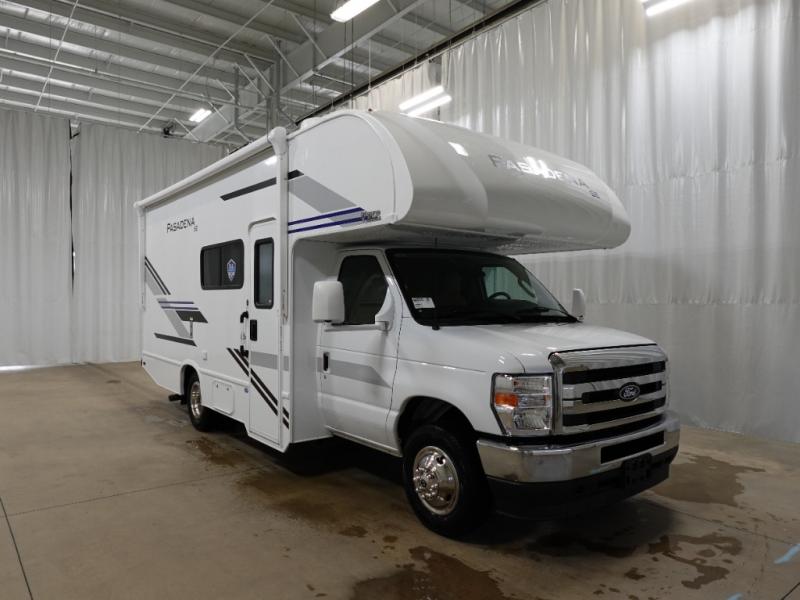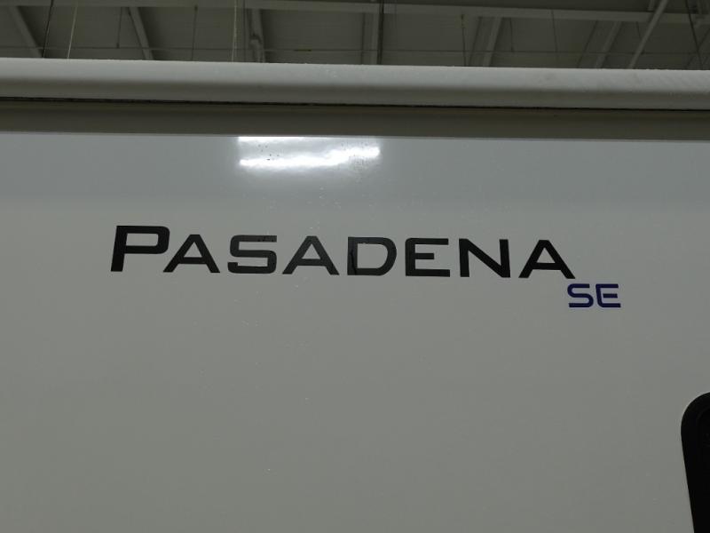 With any Pasadena SE Class C gas motorhome by Thor Motor Coach, you will find convenient amenities, a modern interior, and a reliable Ford E-Series chassis on select models to power your adventures. There is a one-piece fiberglass front cap, and premium one-piece roofing for added strength. Residential vinyl flooring will be easy to keep clean, and you'll love the LED lighting, pressed laminate countertops throughout, and full-extensions ball-bearing drawer guides. These motorhomes also include a generator and a 30-amp shoreline power cord to keep you going, along with a tankless water heater to ensure your comfort!