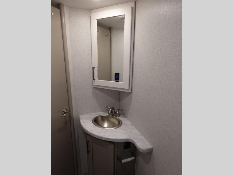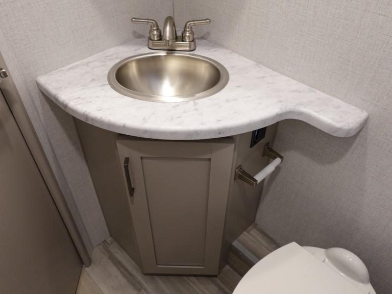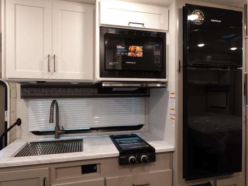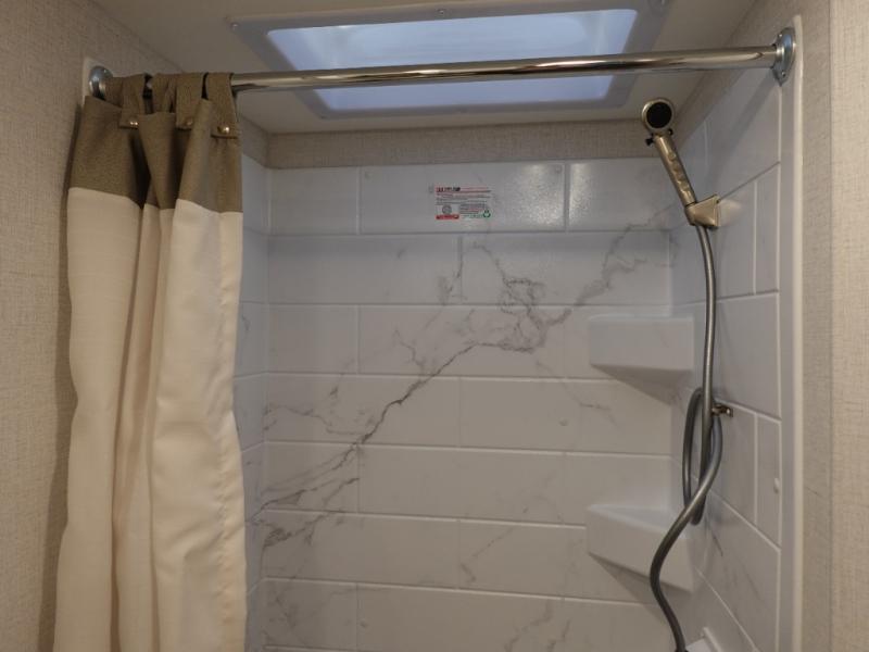 It won't be hard to find comfort in this coach for five! You can freshen up in the rear corner full bath once you've set up camp, then make lunch on the two burner gas cooktop or convection microwave with an air fryer. There is also a 12V refrigerator for cold items and a flip-up countertop for more space. Whether you dine at the Dream Dinette or take your plate outdoors under the 15' power awning, you're sure to have a great time in this motorhome. There is a semi-private bedroom with a 60" x 74" RV queen bed slide and bedroom TV prep if you want the option to watch movies in bed. And your guests can take the Dream Dinette and cab-over bunk at night!