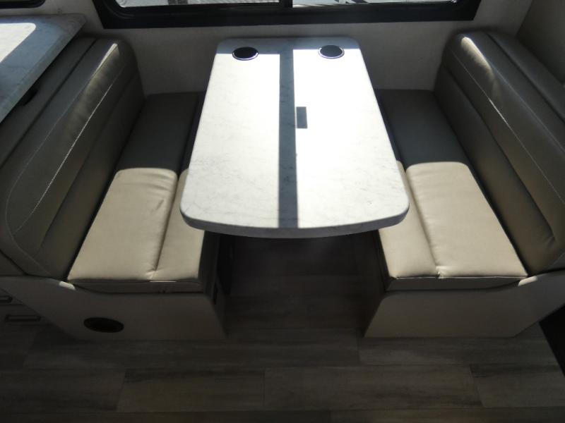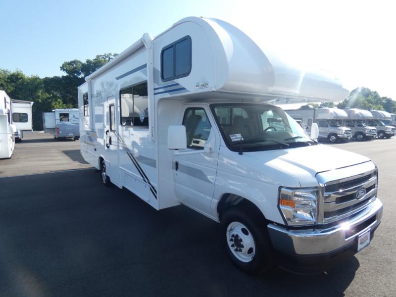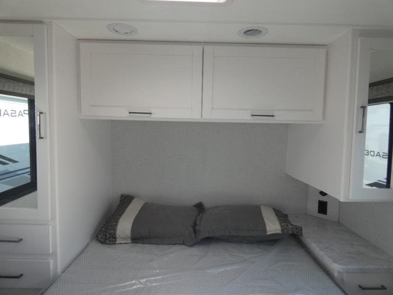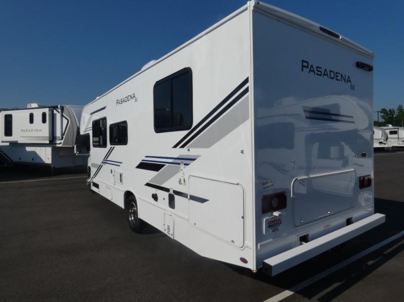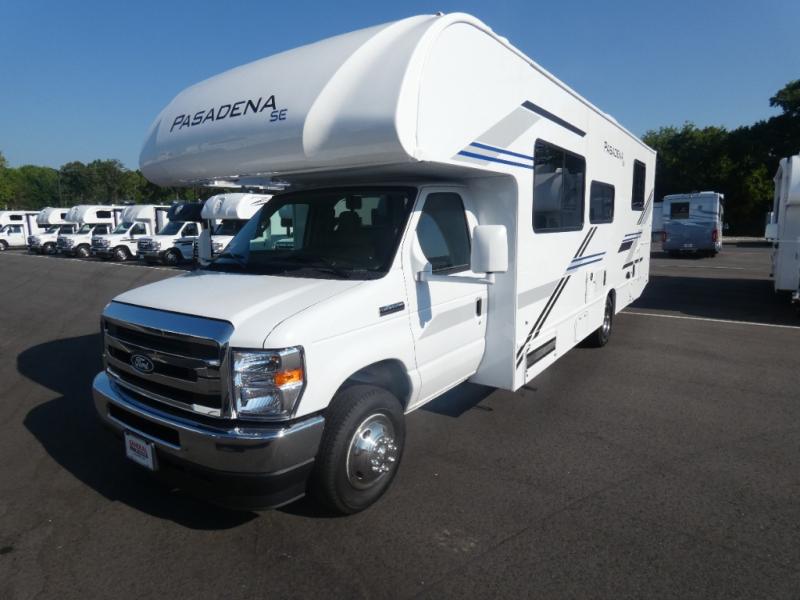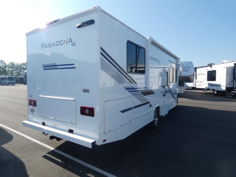 With any Pasadena SE Class C gas motorhome by Thor Motor Coach, you will find convenient amenities, a modern interior, and a reliable Ford E-Series chassis. There is a one-piece fiberglass front cap, and premium one-piece roofing for added strength. Residential vinyl flooring will be easy to keep clean, and you'll love the LED lighting, pressed laminate countertops throughout, and full-extensions ball-bearing drawer guides. These motorhomes also include a generator and a 30-amp shoreline power cord to keep you going, along with a tankless water heater to ensure your comfort!
