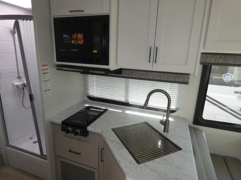 You're sure to have a great time in this coach that can sleep six each night! The rear bedroom includes an RV queen bed and dual closets to keep your things organized, plus the bath is close by for easy nighttime use. Here, you'll find a private toilet and sink, with the independent shower right across the hall. Your guests can sleep on the 68" sofa, 70" dream dinette, or the cab-over bunk! A two burner gas cooktop and convection microwave with an air fryer will let you make meals for your crew, and a 12V refrigerator will keep perishables fresh.