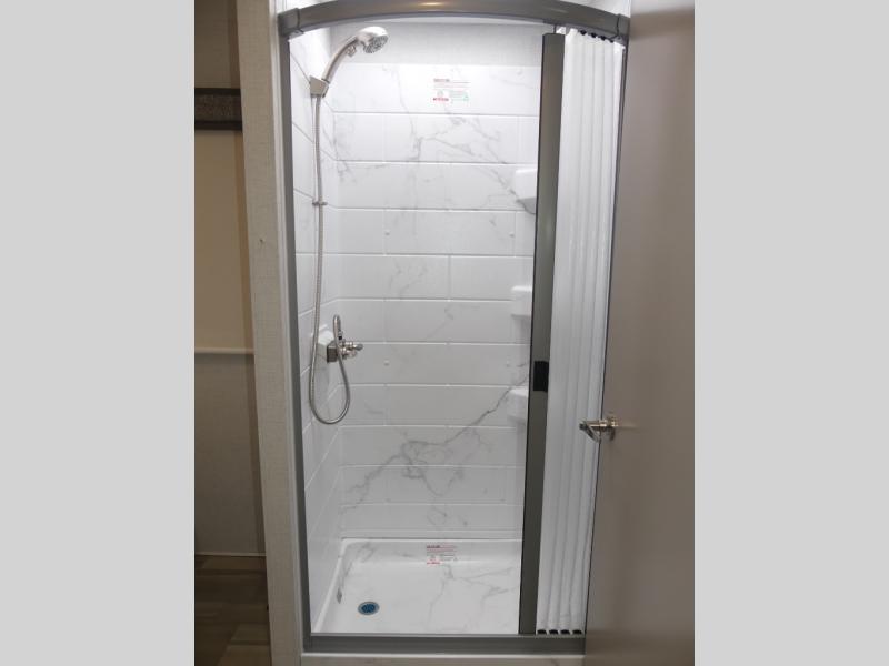 You're sure to have a great time in this coach that can sleep six each night! The rear bedroom includes an RV queen bed and dual closets to keep your things organized, plus the bath is close by for easy nighttime use. Here, you'll find a private toilet and sink, with the independent shower right across the hall. Your guests can sleep on the 68" sofa, 70" dream dinette, or the cab-over bunk! A two burner gas cooktop and convection microwave with an air fryer will let you make meals for your crew, and a 12V refrigerator will keep perishables fresh.
