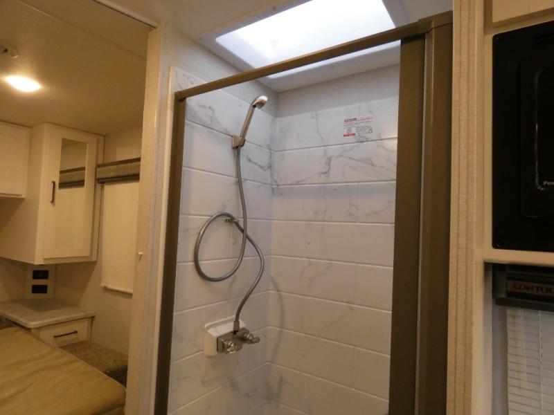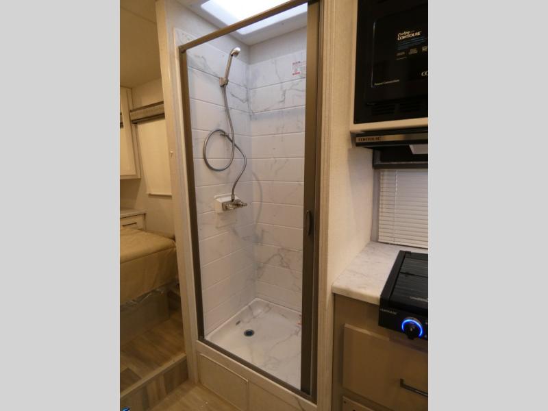 You're sure to have a great time in this coach that can sleep six each night! The rear bedroom includes an RV queen bed and dual closets to keep your things organized, plus the bath is close by for easy nighttime use. Here, you'll find a private toilet and sink, with the independent shower right across the hall. Your guests can sleep on the 68" sofa, 70" dream dinette, or the cab-over bunk! A two burner gas cooktop and convection microwave with an air fryer will let you make meals for your crew, and a 12V refrigerator will keep perishables fresh.