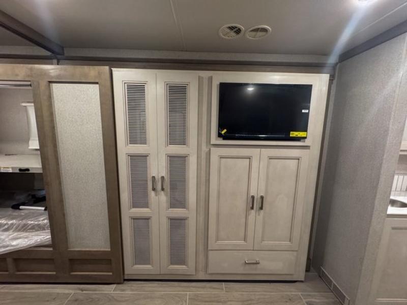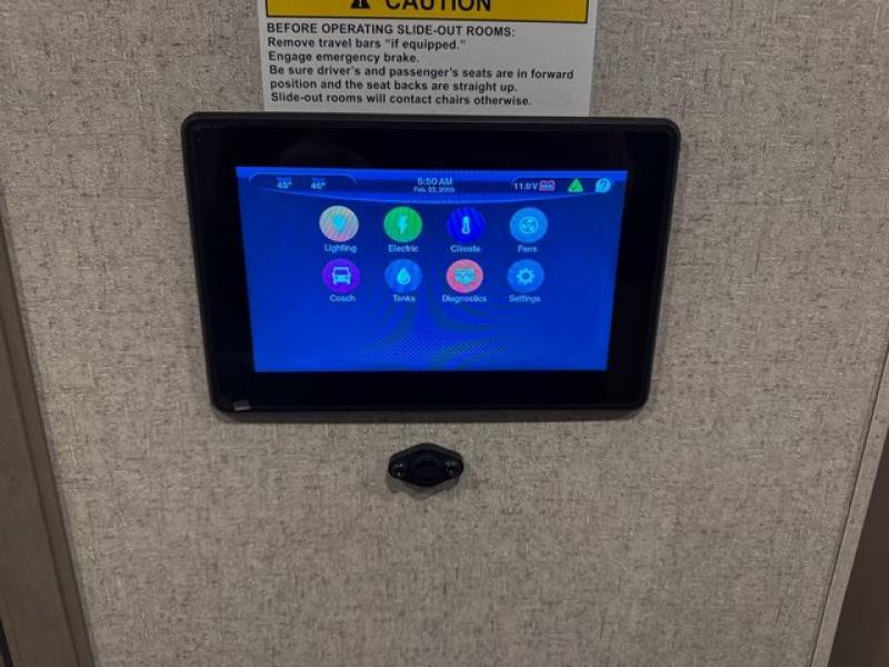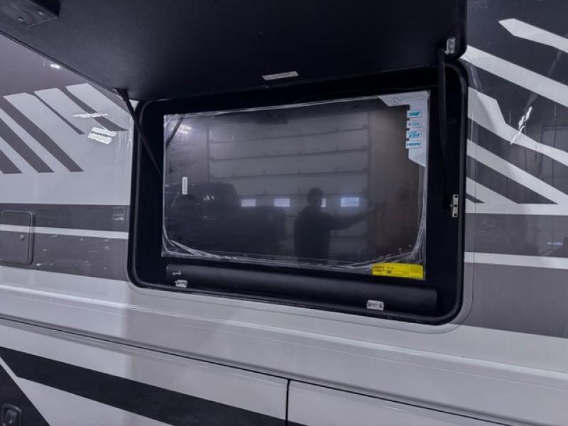Enjoy the outdoors with an exterior entertainment center, solar onboard, Winegard ConnecT 5G system, and durable rotocast pass-through basement storage compartments for all your gear.