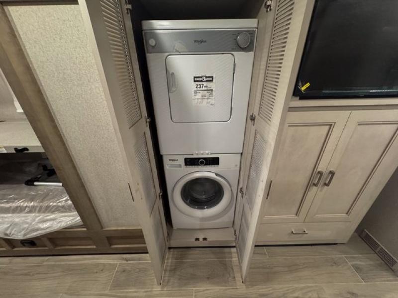 The bunk-over cab and 27" x 74" bunk beds provide additional sleeping space, making this coach ideal for families or guests.
