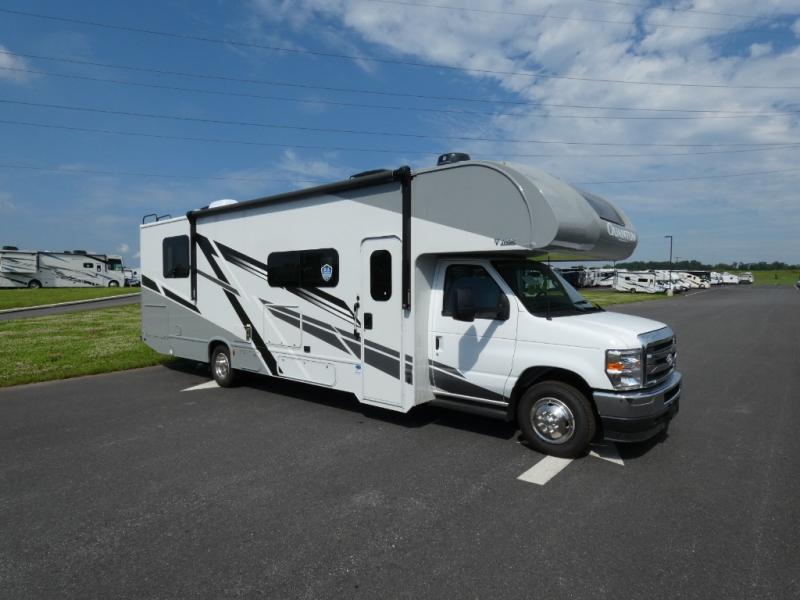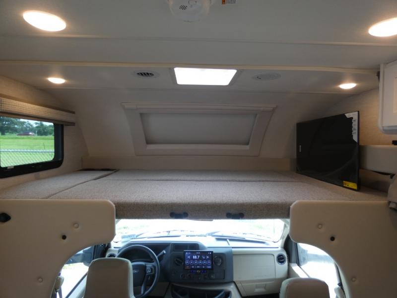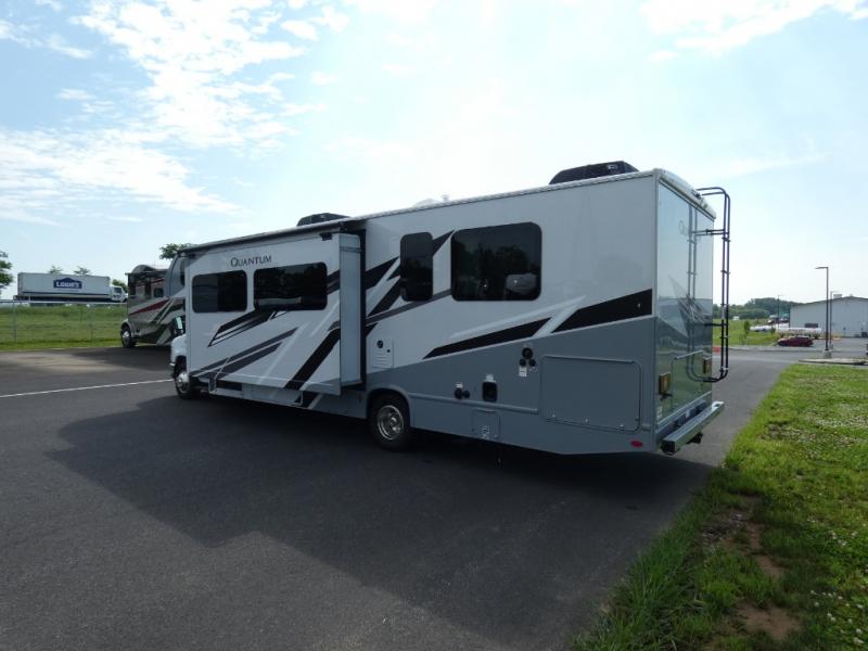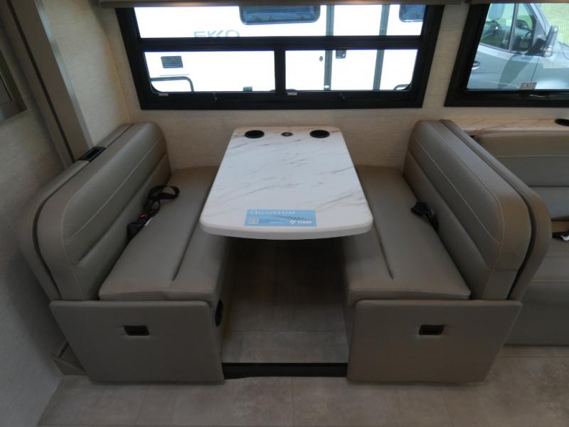 With any Quantum Class C gas motorhome by Thor Motor Coach, you will find a premium one-piece domed roof membrane for added durability, plus a SmoothTECH ride enhancement for better handling. The interior offers residential vinyl flooring, Leatherette furniture, and full extension soft close metal ball-bearing drawer guides. The driver is sure to appreciate the touchscreen dash radio and back-up monitor to make maneuvering in and out of campgrounds easier than ever. These motorhomes also feature a 100-watt solar charging system for off-grid capabilities, a tankless water heater, an exterior LP connection and many more conveniences.