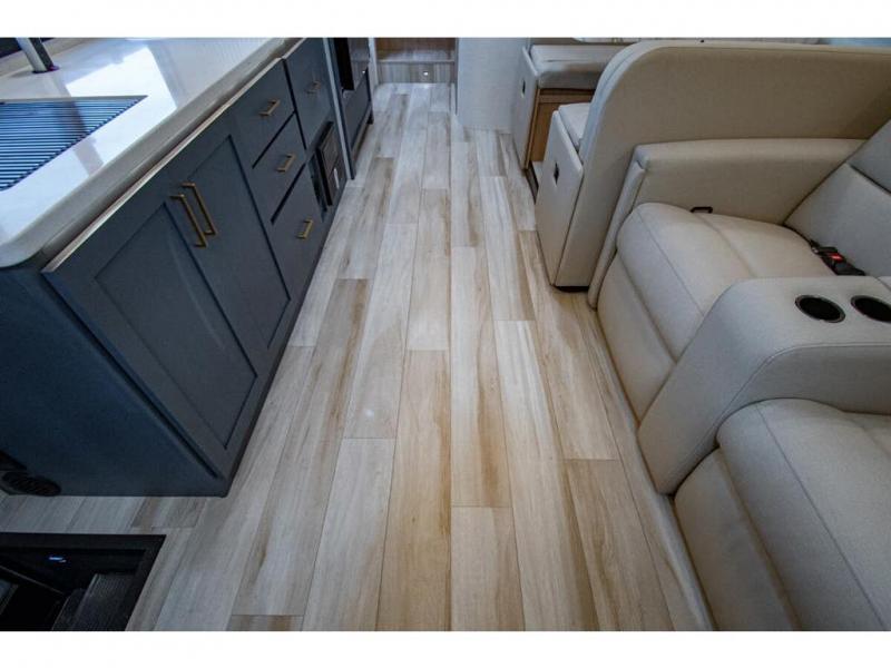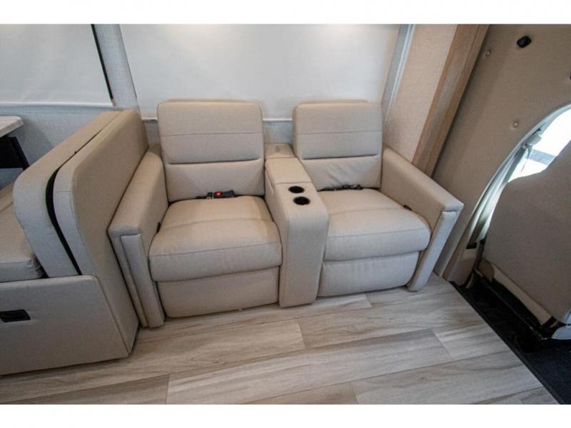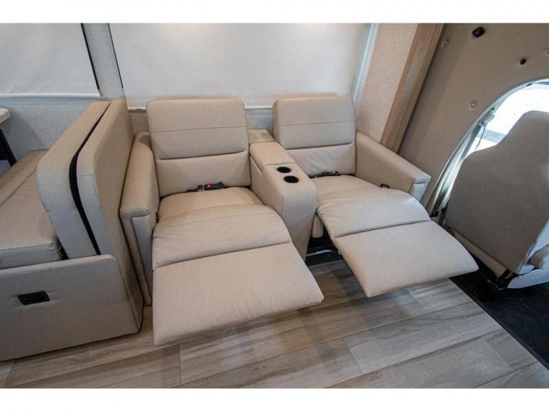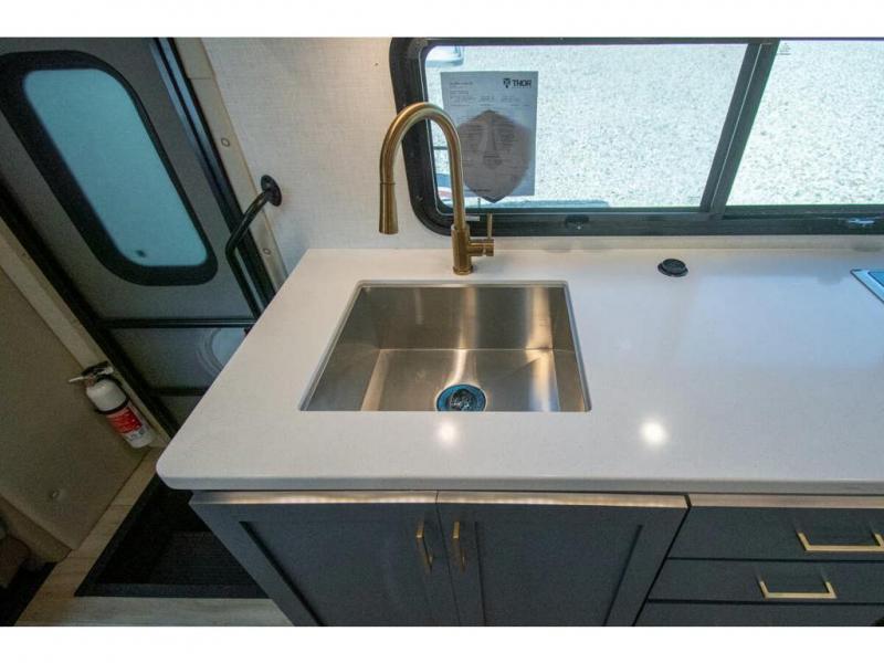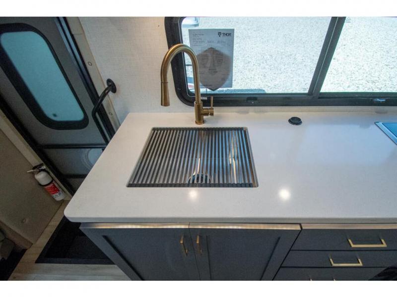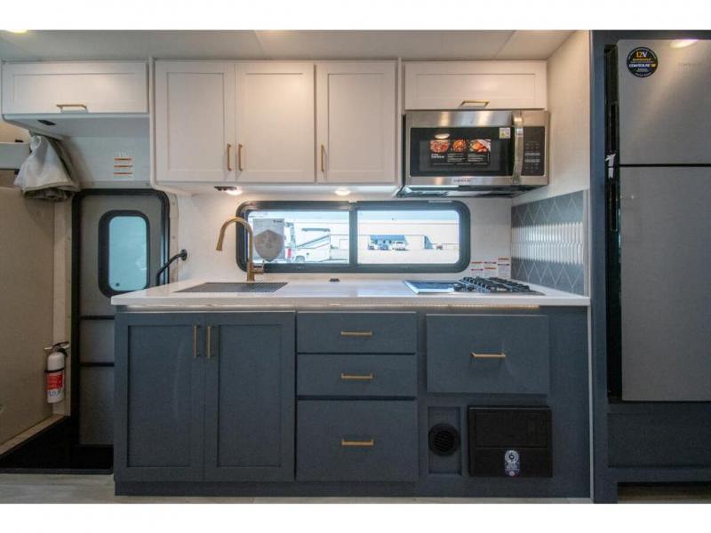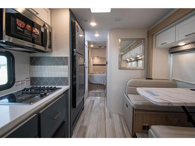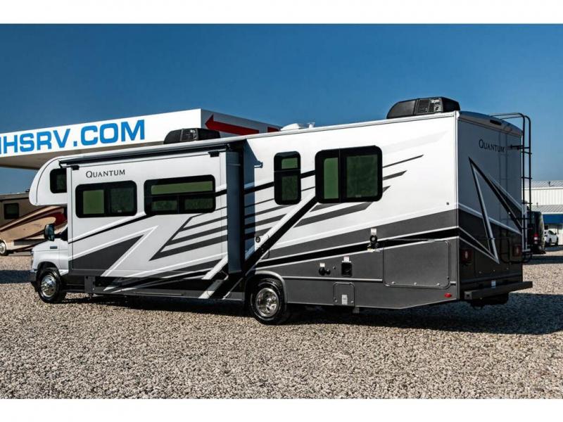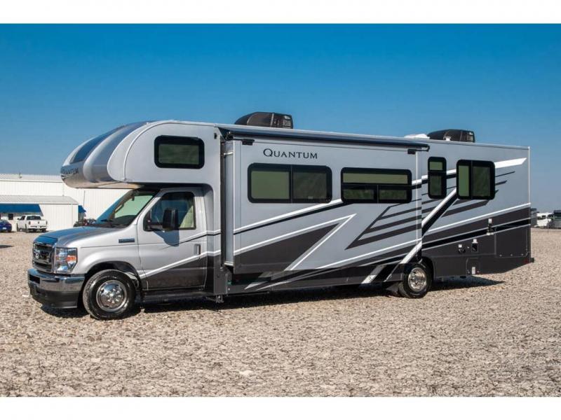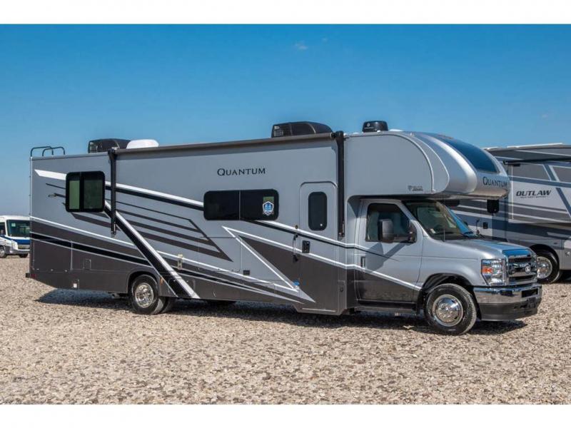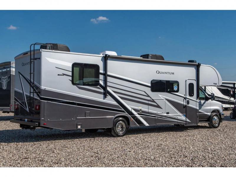 With any Quantum Class C gas motorhome by Thor Motor Coach, you will find a premium one-piece domed roof membrane for added durability, plus a SmoothTECH ride enhancement for better handling. The interior offers residential vinyl flooring, Leatherette furniture, and full extension soft close metal ball-bearing drawer guides. The driver is sure to appreciate the touchscreen dash radio and back-up monitor to make maneuvering in and out of campgrounds easier than ever. These motorhomes also feature a 100-watt solar charging system for off-grid capabilities, a tankless water heater, an exterior LP connection and many more conveniences.