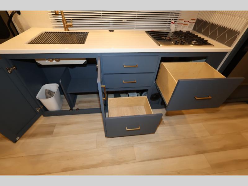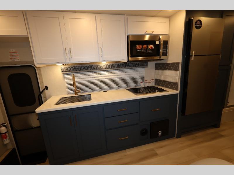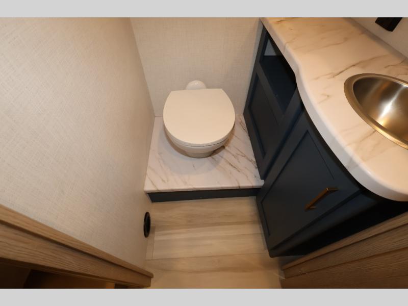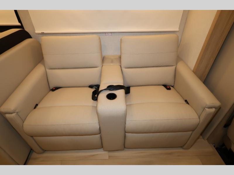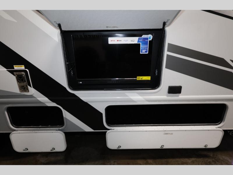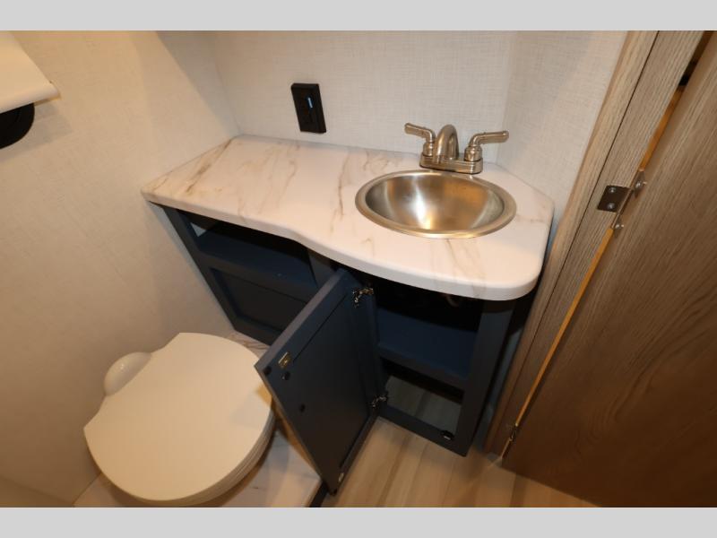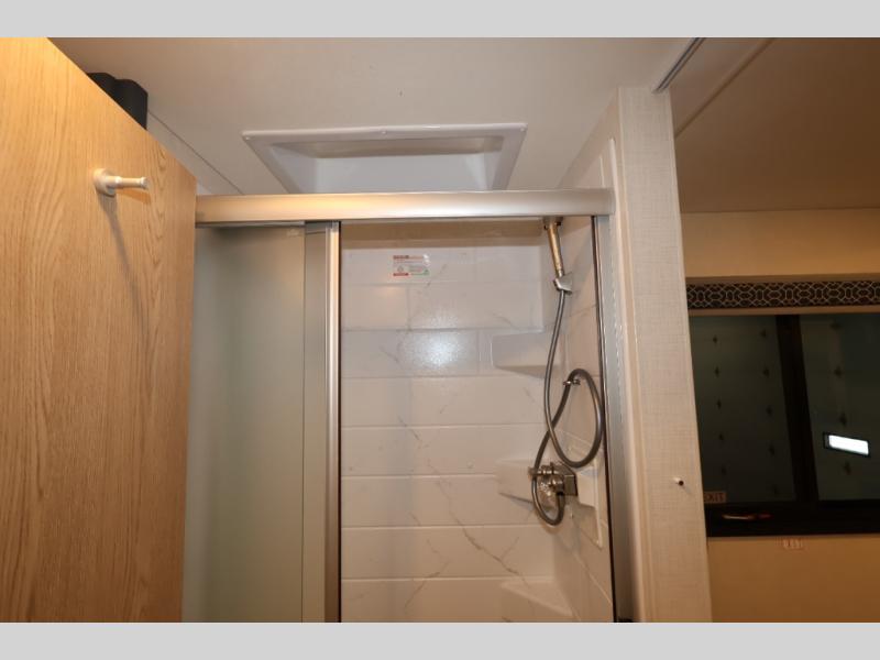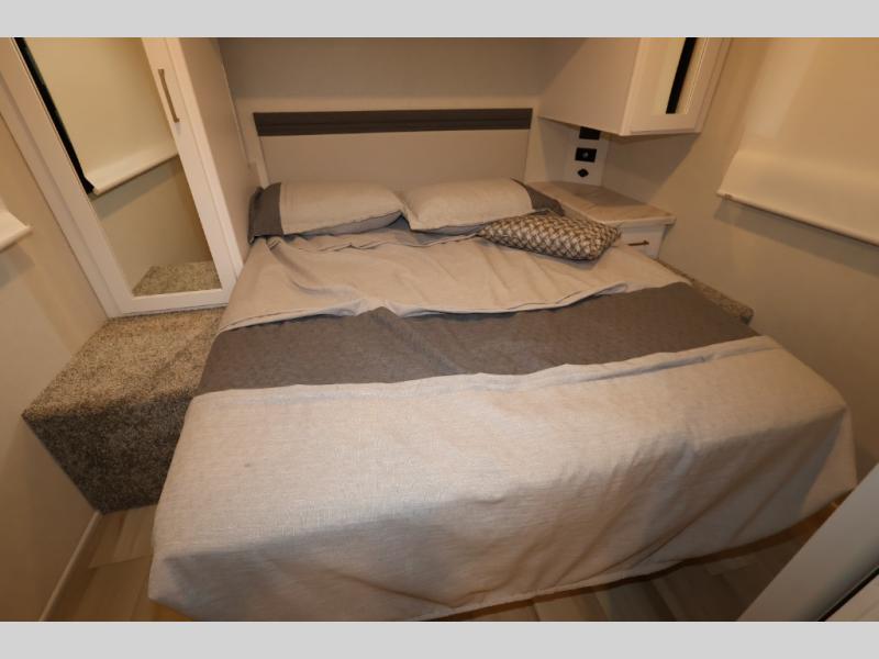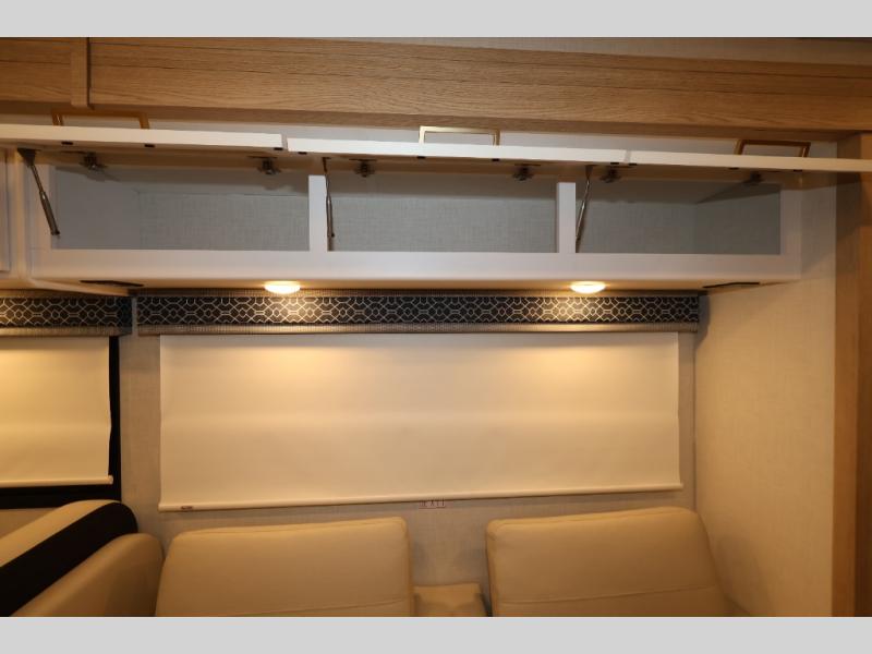 Head across the state or country in this spacious coach for five to six! The cab-over bunk area features a 52" x 96" sleeping area, plus a built-in skylight and a 40" Smart TV on swivel to enjoy movie nights. Your crew can relax on the jack-knife sofa and dream dinette while the chef of your group is making lunch on the two burner gas cooktop with a single induction cooktop. The full bath features a 24" x 36" shower, with the toilet and sink across the hall, and the door can shut off the toilet if two people are needing to use this space at once. Head to the rear private bedroom where you'll find an RV queen bed and dual bedside closets to keep your things organized.