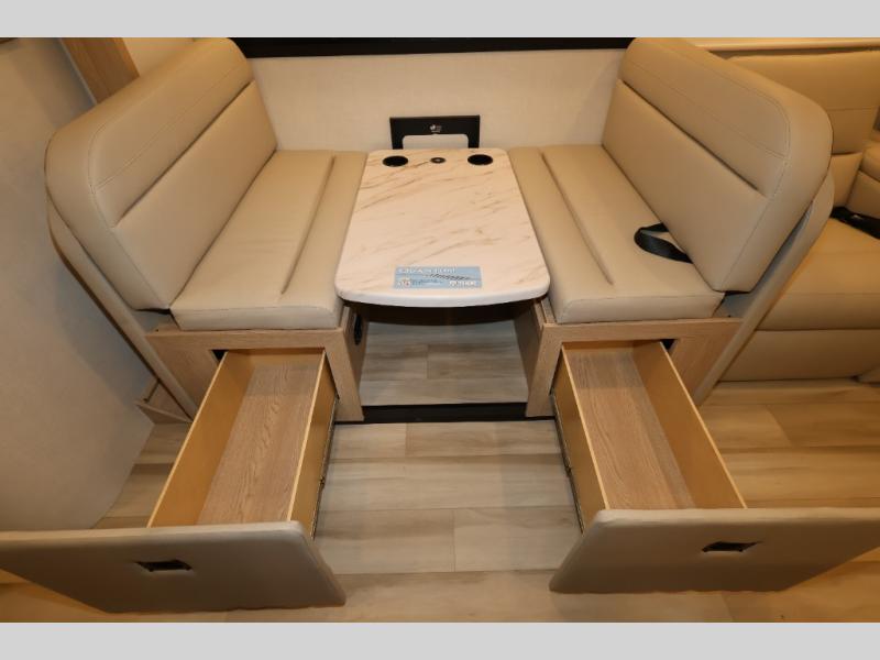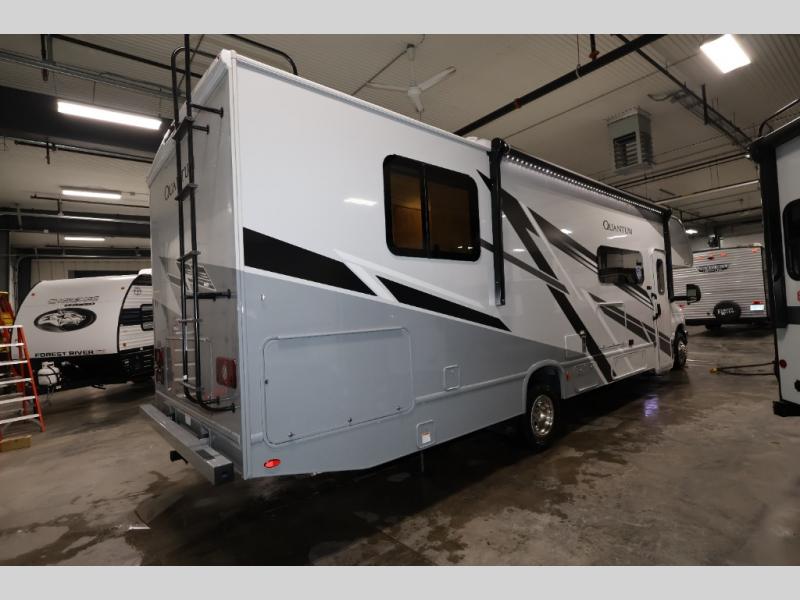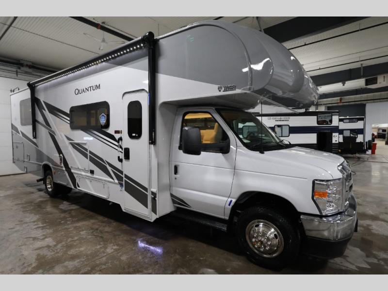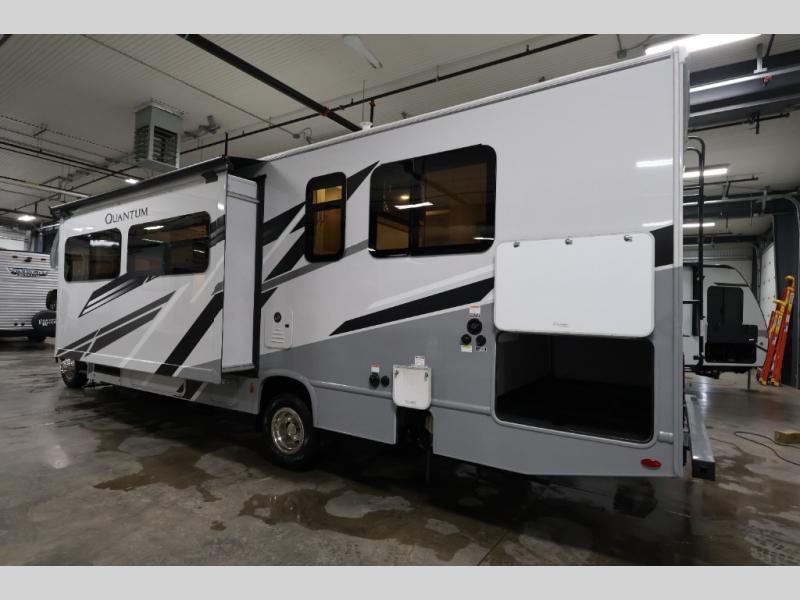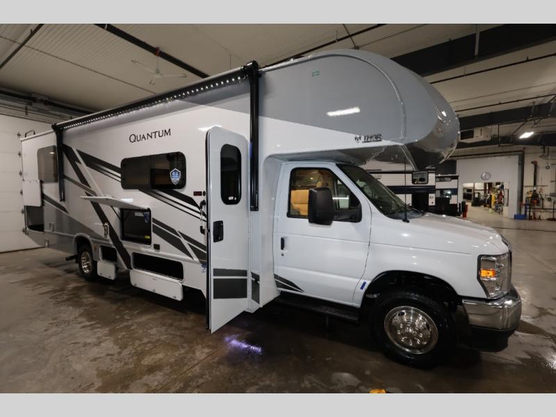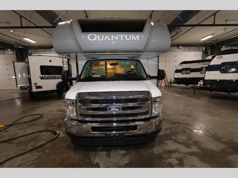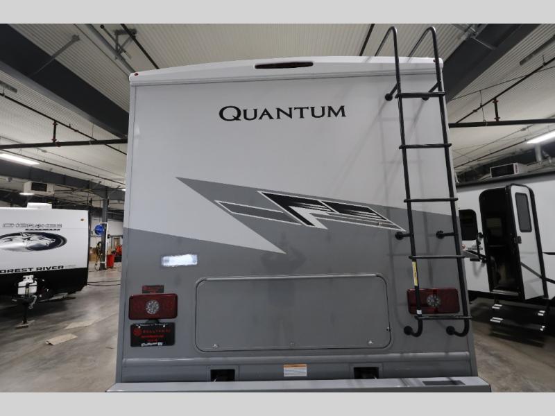 With any Quantum Class C gas motorhome by Thor Motor Coach, you will find a premium one-piece domed roof membrane for added durability, plus a SmoothTECH ride enhancement for better handling. The interior offers residential vinyl flooring, Leatherette furniture, and full extension soft close metal ball-bearing drawer guides. The driver is sure to appreciate the touchscreen dash radio and back-up monitor to make maneuvering in and out of campgrounds easier than ever. These motorhomes also feature a 100-watt solar charging system for off-grid capabilities, a tankless water heater, an exterior LP connection and many more conveniences.