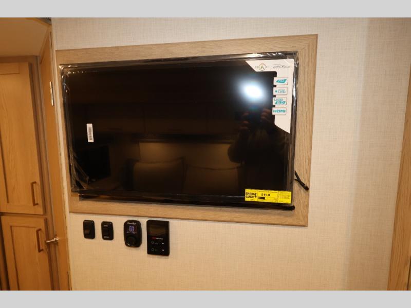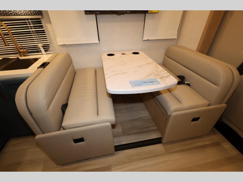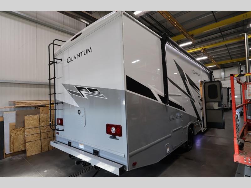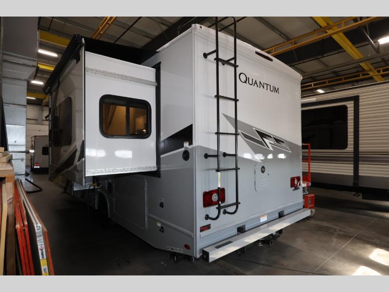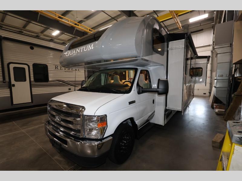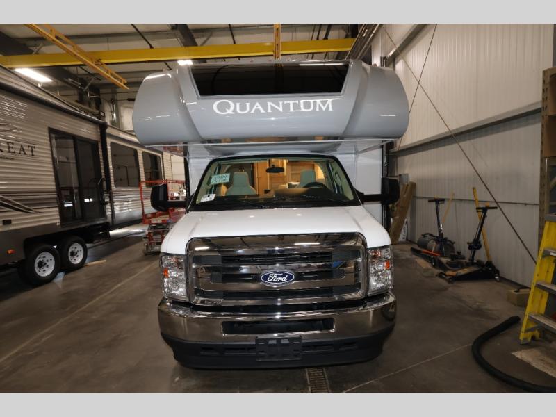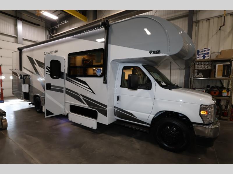 With any Quantum Class C gas motorhome by Thor Motor Coach, you will find a premium one-piece domed roof membrane for added durability, plus a SmoothTECH ride enhancement for better handling. The interior offers residential vinyl flooring, Leatherette furniture, and full extension soft close metal ball-bearing drawer guides. The driver is sure to appreciate the touchscreen dash radio and back-up monitor to make maneuvering in and out of campgrounds easier than ever. These motorhomes also feature a 100-watt solar charging system for off-grid capabilities, a tankless water heater, an exterior LP connection and many more conveniences.