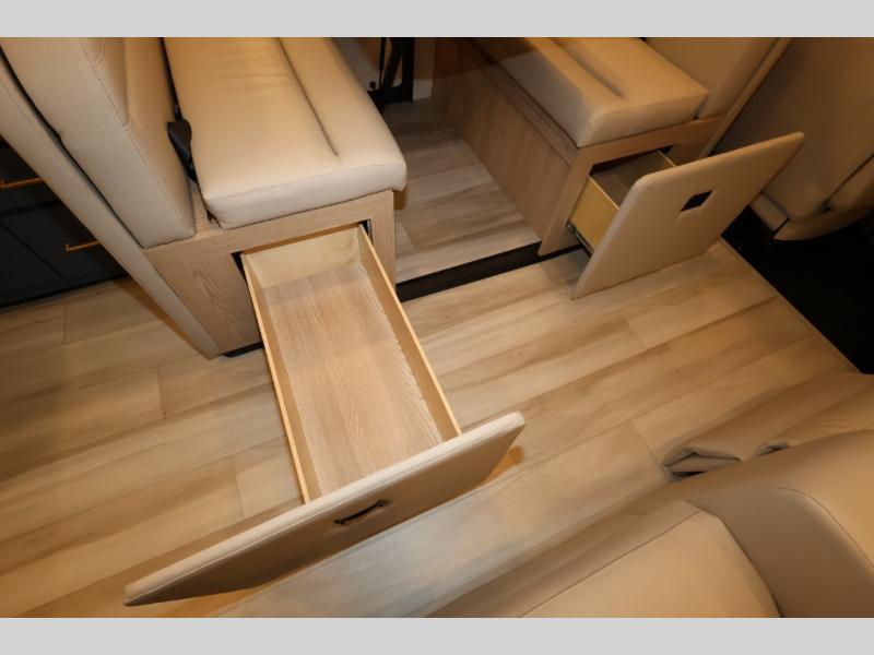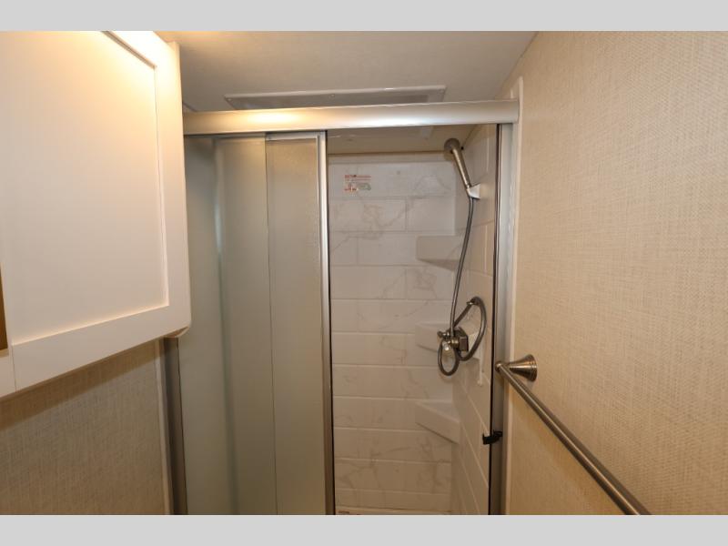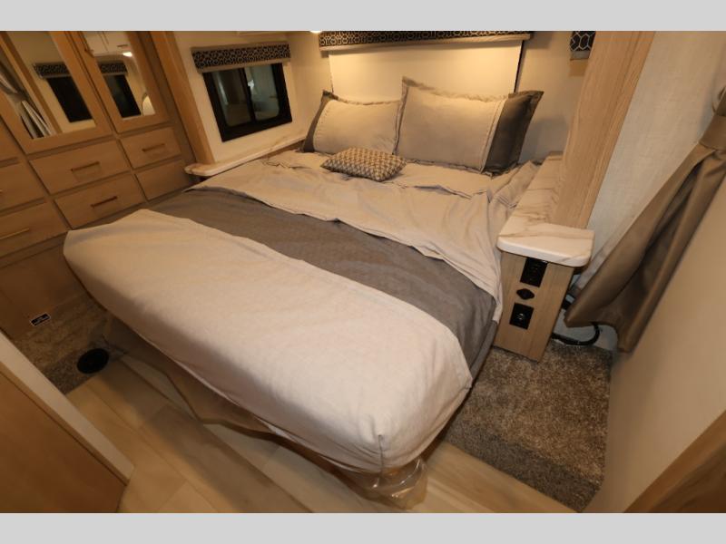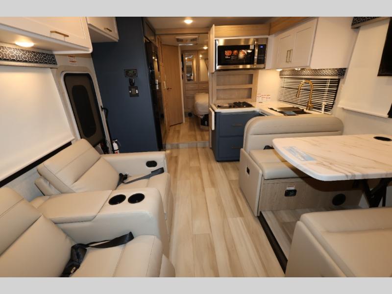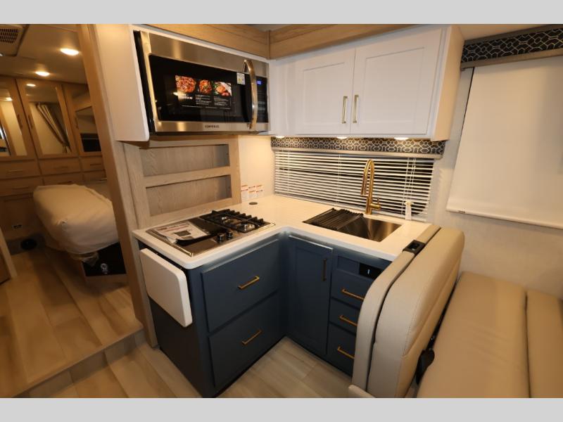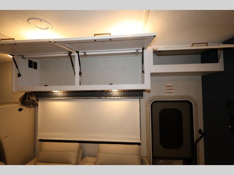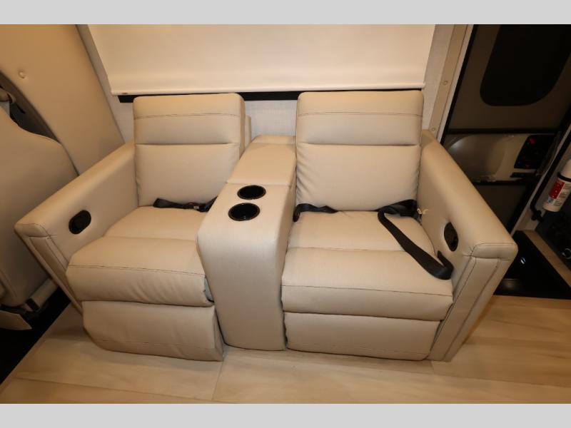 With any Quantum Class C gas motorhome by Thor Motor Coach, you will find a premium one-piece domed roof membrane for added durability, plus a SmoothTECH ride enhancement for better handling. The interior offers residential vinyl flooring, Leatherette furniture, and full extension soft close metal ball-bearing drawer guides. The driver is sure to appreciate the touchscreen dash radio and back-up monitor to make maneuvering in and out of campgrounds easier than ever. These motorhomes also feature a 100-watt solar charging system for off-grid capabilities, a tankless water heater, an exterior LP connection and many more conveniences.