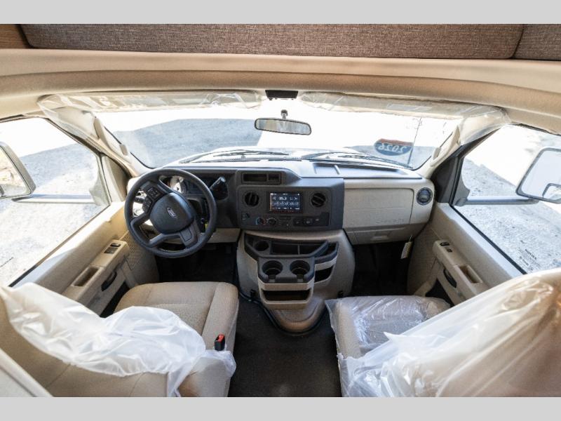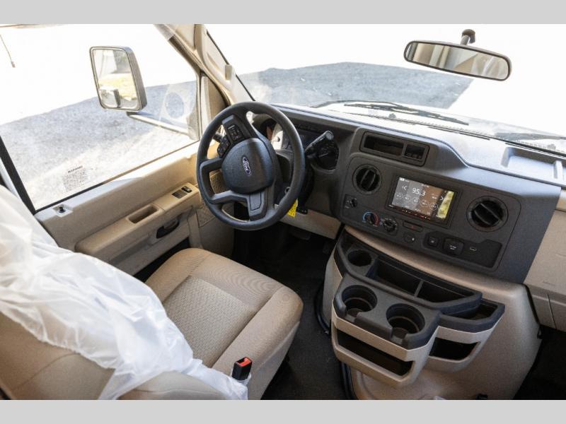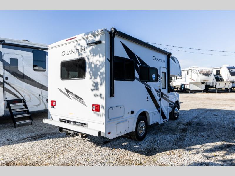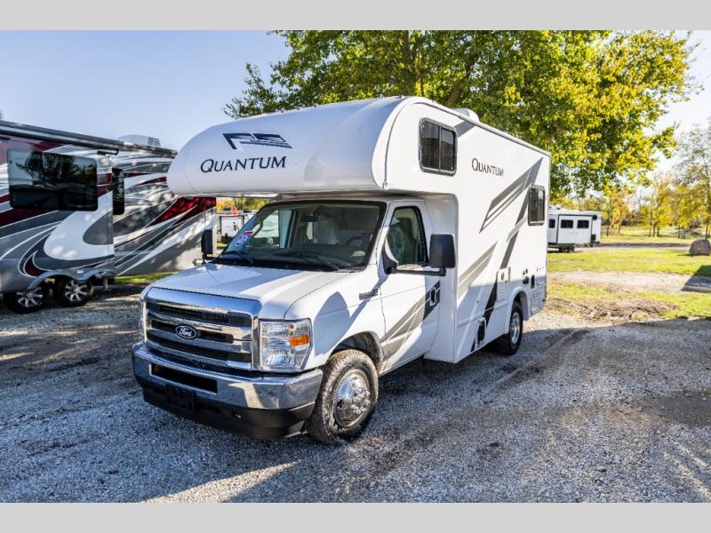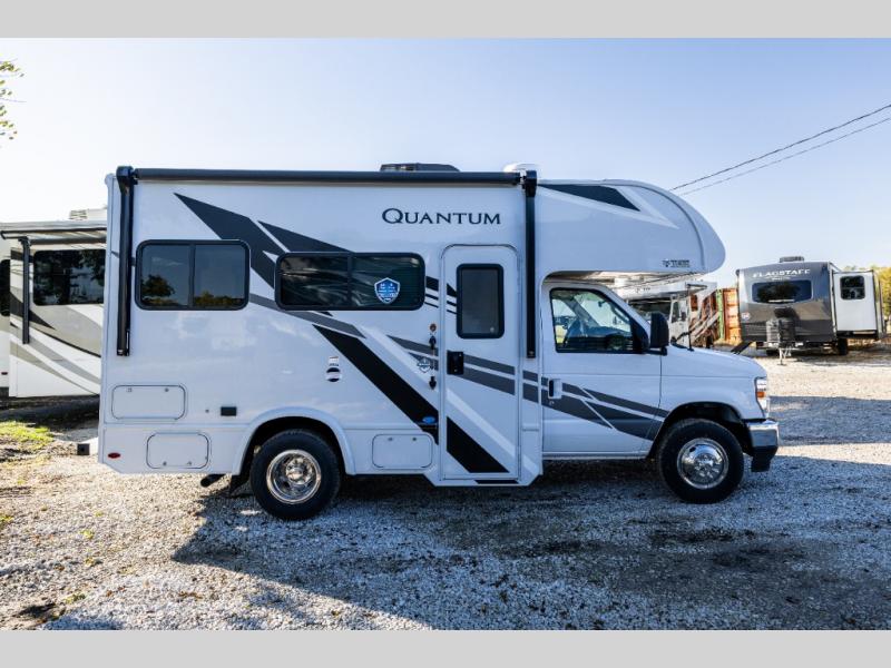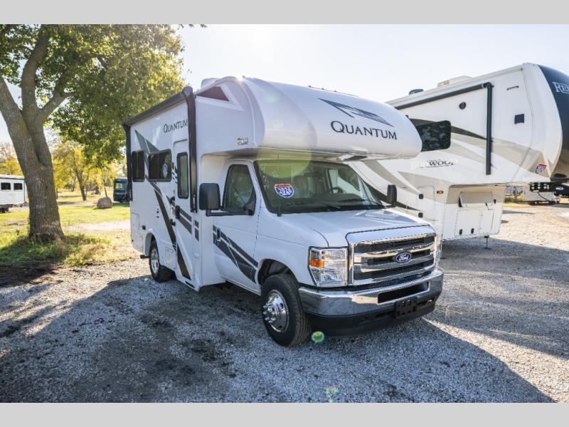 With any Quantum ESpec Essential Class C gas motorhome by Thor Motor Coach, you will find convenient amenities, a modern interior, and a reliable Ford E-Series chassis, with an optional Chevy chassis on select models to power your adventures. There is welded tubular aluminum roof and sidewall cage construction, a one-piece fiberglass front cap, and premium one-piece Crossflex exterior roofing for added strength. Residential vinyl flooring will be easy to keep clean, and you'll love the sleek look of the Harbor Collection, three-toned cabinets. These motorhomes also include a 50 state 4.0 kW dual gas/LP generator and a 30-amp shoreline power cord to keep you going, along with a tankless water heater and 13,500 roof front A/C to ensure your comfort!
