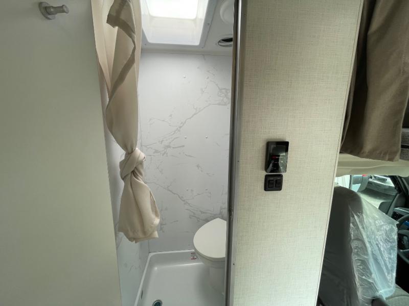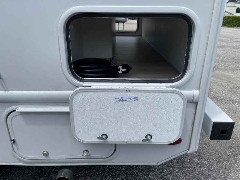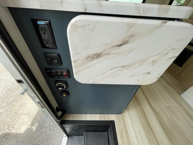 This compact, yet cozy coach is perfect for trips to the campground each weekend! Once you've reached your destination, you can set up the 11' power awning, unload the exterior storage compartments, and relax in your camp chairs. The two burner gas cooktop and convection microwave with an air fryer will let you make meals each day, and there is a 12V refrigerator to keep food fresh. A flip-up counter is another great feature that will give you more prep space! You can freshen up in the wet bath, grab your night clothes from the closet, then convert the U-shaped dinette into a 54" x 77" bed for a great night's rest!